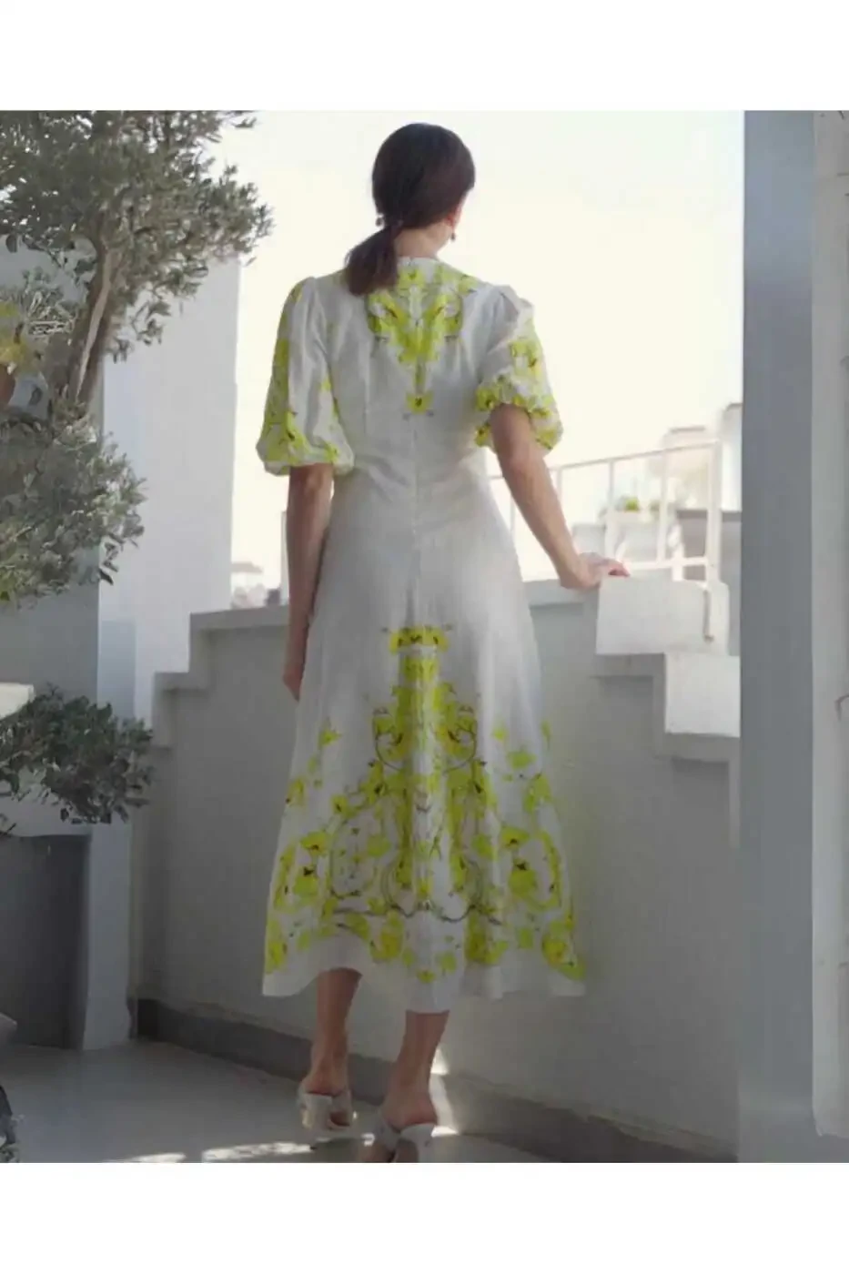 Желтое платье Truvakar с цветочным рисунком на рукаве | Бесплатный возврат в течение 15 дней