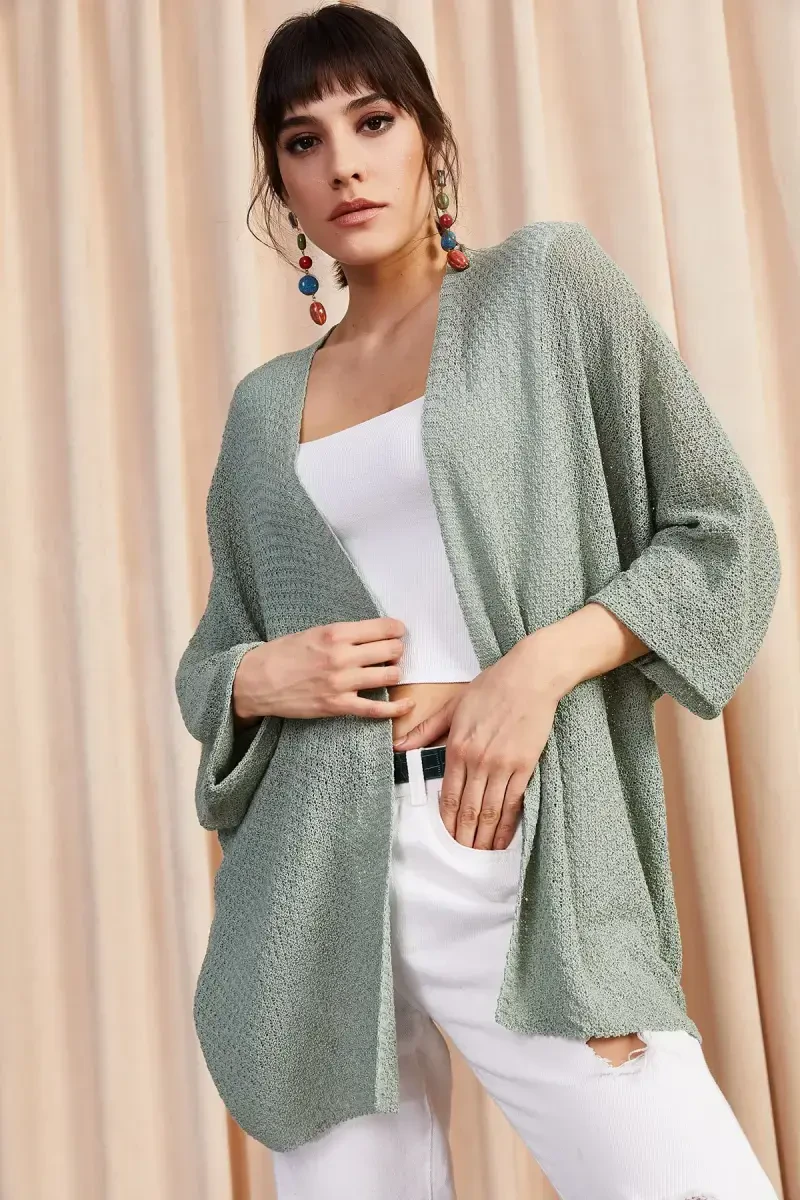 Женский весенний кардиган "Летучая мышь" цвета морской волны HRK-19000057-SU YEŞİLİ — отличный вариант, который согреет вас от прохладного весеннего бриза и позволит вам не жертвовать своей элегантностью. Этот кардиган особого дизайна удобен в носке благодаря современному крою рукавов "летучая мышь", а также добавляет оригинальности вашему стилю. Цвет морской волны отражает свежесть и жизненную силу природы, привнося свежую атмосферу в ваш гардероб. Этот кардиган, который можно легко использовать в повседневных сочетаниях или на специальных мероприятиях, подчеркнет вашу элегантность в любой обстановке. Фактура кардигана мягкая и легкая благодаря 100% акриловому составу. Таким образом, он обеспечивает комфорт в течение всего дня. Акриловый материал также позволяет кардигану легко сохранять свою форму и быть долговечным. Крой рукавов "летучая мышь" создает современный силуэт, не ограничивая свободу движений. Оттенок морской волны легко сочетается с разными цветами и позволяет добавить индивидуальности вашему стилю. Этот кардиган не только обеспечивает стильный внешний вид, но и обеспечивает практичное использование. Благодаря своей легкой конструкции его легко носить с собой, и вы можете иметь его при себе, когда вам это нужно. В офисе, в путешествии или на отдыхе на свежем воздухе этот кардиган согреет вас и дополнит ваш стиль. Размер S/36 на модели показывает, что кардиган подходит для разных размеров. Женский весенний кардиган "Летучая мышь" цвета морской волны HRK-19000057-SU YEŞİLİ имеет все шансы стать незаменимой частью вашего гардероба. Этот кардиган, который благодаря своему удобному и стильному дизайну привлечет к вам внимание в любой обстановке, является идеальным выбором для тех, кто хочет добавить оригинальности своему стилю. Вы можете выбрать этот кардиган, чтобы изменить ситуацию как в повседневной жизни, так и в особых случаях.