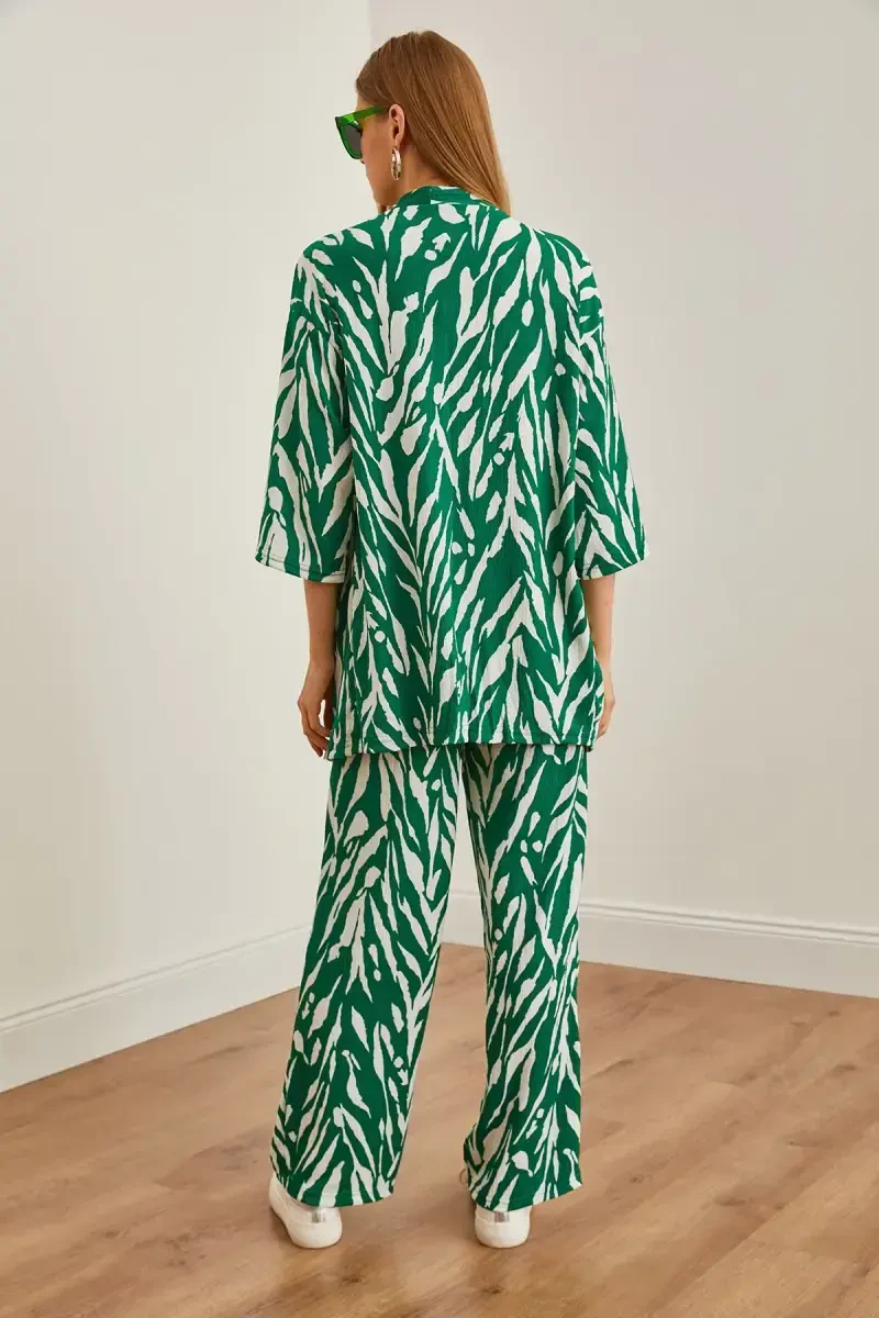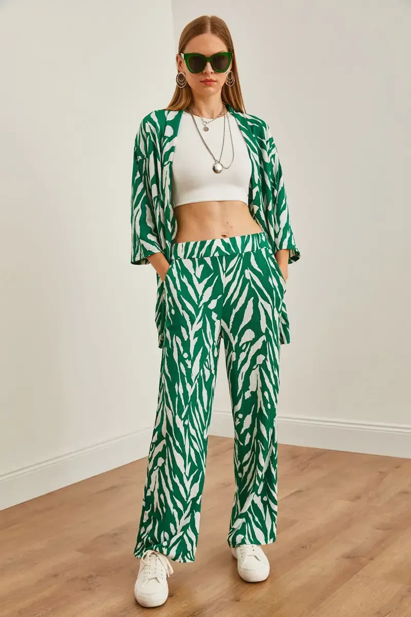 Kadın Yaprak Yeşil Üst Kimono Alt Cepli Pantolon Takım, şıklığı ve rahatlığı bir araya getiren, özel tasarımıyla dikkat çeken bir kombin. Bu eşsiz takım, Olalook Official güvencesiyle sunulmaktadır ve gardırobunuzun vazgeçilmezi olmaya adaydır. İster günlük kullanımda, ister özel davetlerde tercih edebileceğiniz bu takım, modern ve zarif görünümüyle her ortamda fark yaratmanızı sağlar. Yaprak yeşili rengi, doğanın tazeliğini ve canlılığını yansıtırken, kimono üst ve cepli pantolonun uyumu, şık bir siluet oluşturur. Takımın kumaş kalitesi, gün boyu konforlu bir kullanım deneyimi sunar. Hafif ve dökümlü yapısıyla hareket özgürlüğünüzü kısıtlamaz. Kimono üstün rahat kesimi, farklı vücut tiplerine uyum sağlarken, cepli pantolonun pratikliği günlük hayatınızda size kolaylık sağlar. Bu takım, sadece şık görünmekle kalmayıp, aynı zamanda fonksiyonel özellikleriyle de ön plana çıkar. Üst ve alt parçayı ayrı ayrı kombinleyerek farklı stiller yaratabilir, gardırobunuzdaki diğer parçalarla kolayca uyum sağlayabilirsiniz. İster topuklu ayakkabılarla şık bir görünüm elde edin, ister spor ayakkabılarla daha rahat bir tarz yakalayın, bu takım her durumda size eşlik eder. Ürünün materyali %100 polyesterdir, bu sayede kolay ütülenebilir ve uzun ömürlüdür. Kumaşın dayanıklılığı, sık kullanıma uygun olmasını sağlar. Modelin üzerindeki S/36 bedeni, ürünün vücuda nasıl oturduğunu ve duruşunu görmeniz açısından önemlidir. Renkler, stüdyo çekimlerinde ışık farklılıklarından dolayı değişiklik gösterebilir, bu nedenle ürünün gerçek rengi ile fotoğraf arasında ufak farklılıklar olabilir. Bu durum, ürünün doğallığını ve benzersizliğini vurgular. Kadın Yaprak Yeşil Üst Kimono Alt Cepli Pantolon Takım, hem şıklığına hem de rahatlığına önem veren kadınlar için ideal bir seçimdir. Kendinizi özel hissetmek ve stilinizi yansıtmak için bu takımı tercih edebilirsiniz. Olalook Official kalitesiyle sunulan bu ürün, gardırobunuzun en sevilen parçalarından biri olacak ve size her zaman şık ve özgüvenli bir görünüm kazandıracaktır.