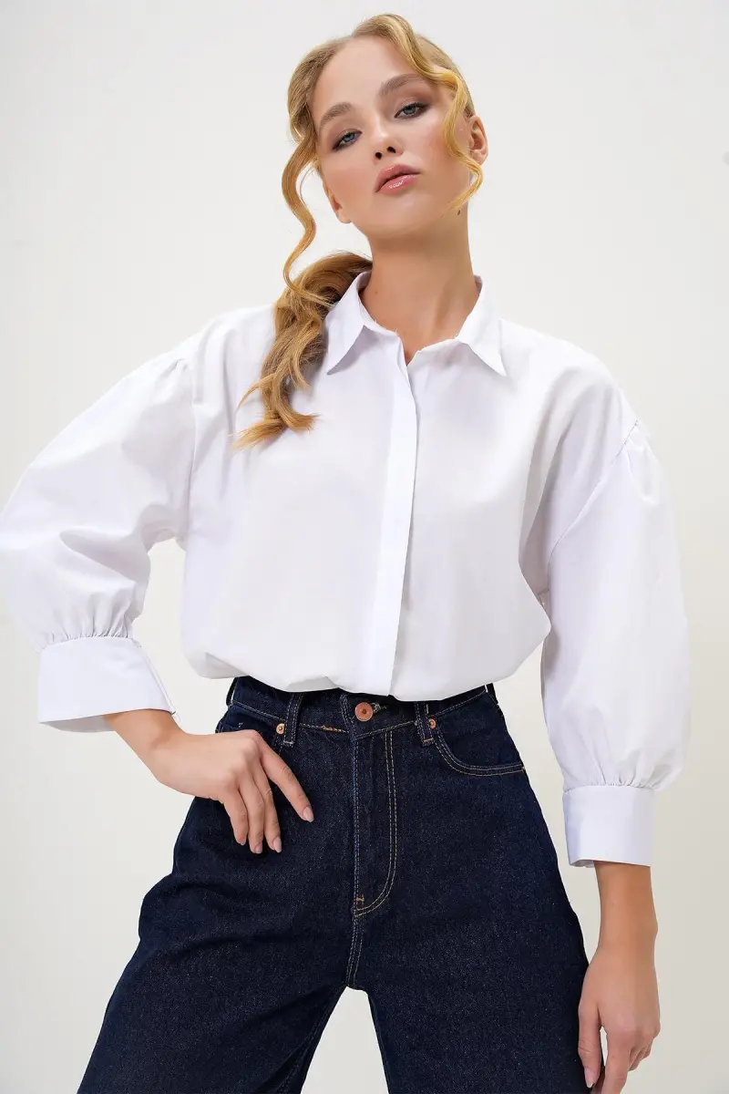 Если вы ищете дизайн, сочетающий в себе элегантность и комфорт, подходящий для повседневного использования, женская белая рубашка с рукавами-фонариками и скрытой планкой из поплина - это именно то, что вам нужно! С ее элегантными рукавами-фонариками и скрытой планкой эта рубашка создает одновременно современный и стильный образ, обеспечивая вам комфорт в течение всего дня. Изготовленная из высококачественной поплиновой ткани, рубашка дышащая, а ее мягкая текстура обеспечивает комфорт в течение всего дня.