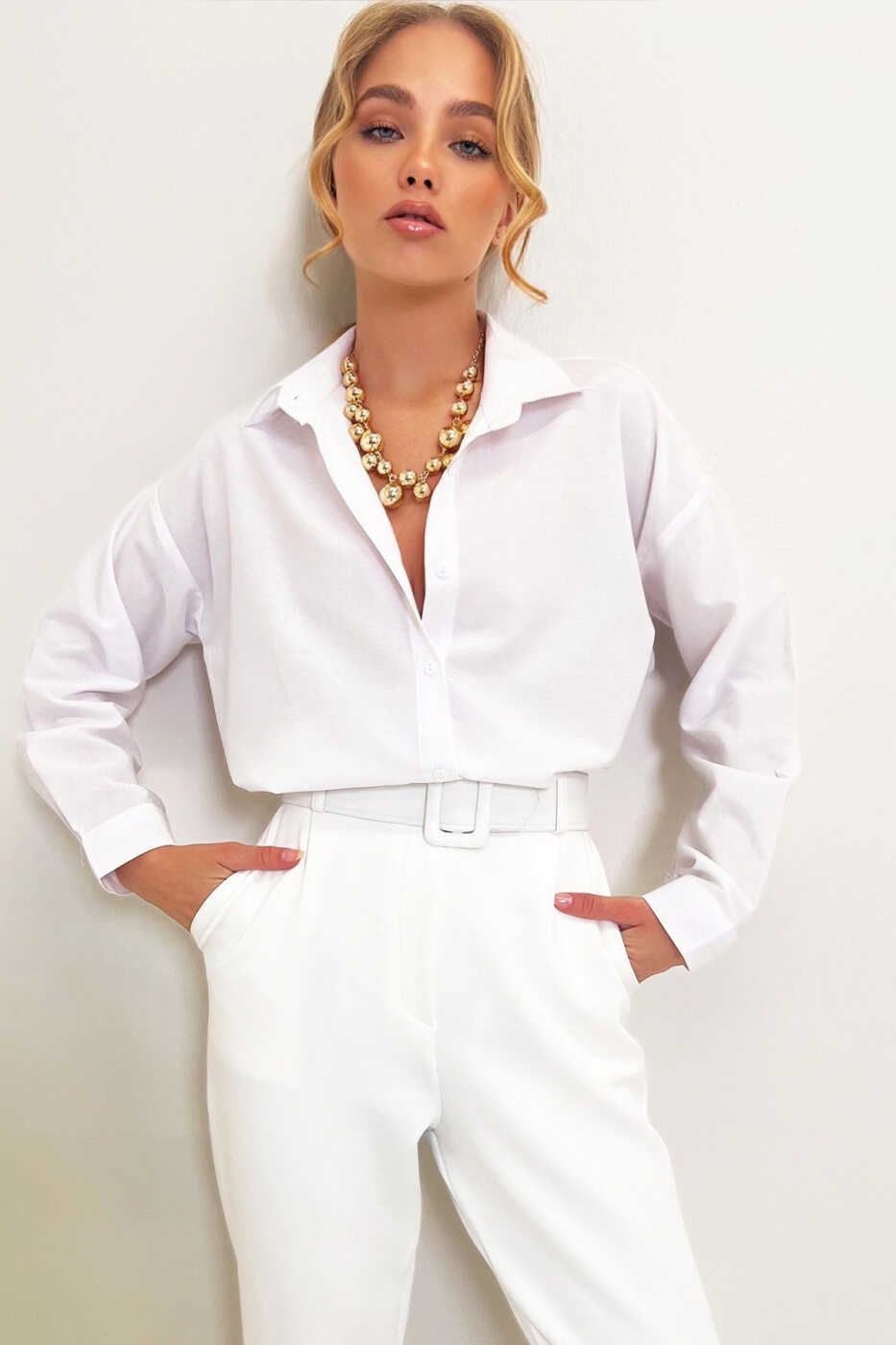 Выражайте свой стиль свободно с помощью женской белой рубашки оверсайз из длинной ткани ALC-X6828, получайте комфортный и стильный образ!