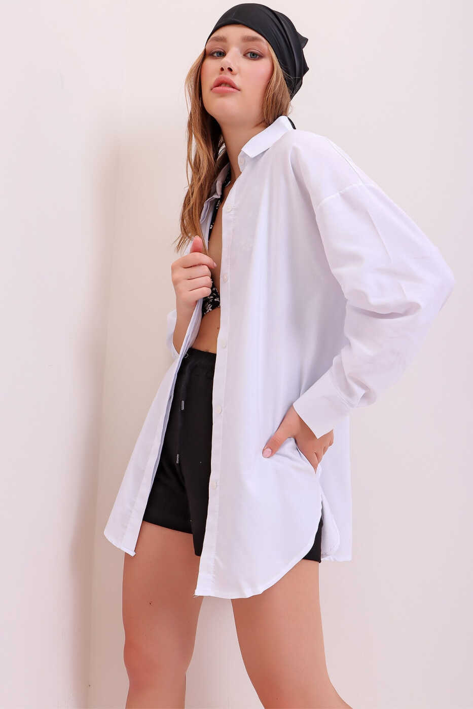 Сочетающая в себе стиль и комфорт, Женская белая рубашка оверсайз из длинной ткани ALC-X6828 готова стать неотъемлемой частью вашего гардероба. Рубашка, изготовленная из легкой и дышащей тканой ткани, обеспечивает комфортную носку в течение всего дня. Ее свободный крой позволяет вам свободно двигаться и добавляет современный штрих к вашему стилю. Длинный крой позволяет вам добиться как стильного образа, так и использовать его с различными сочетаниями.