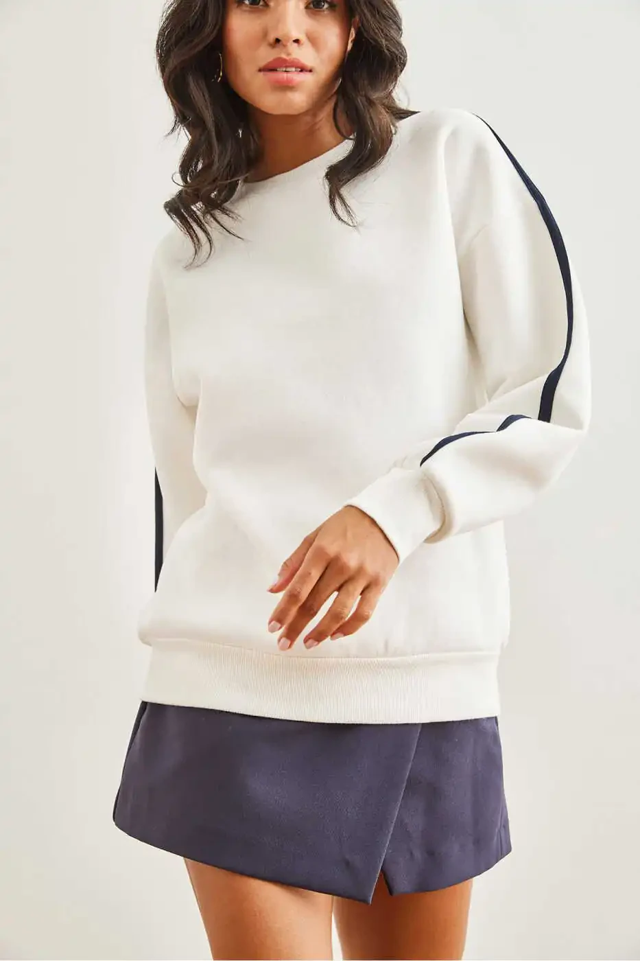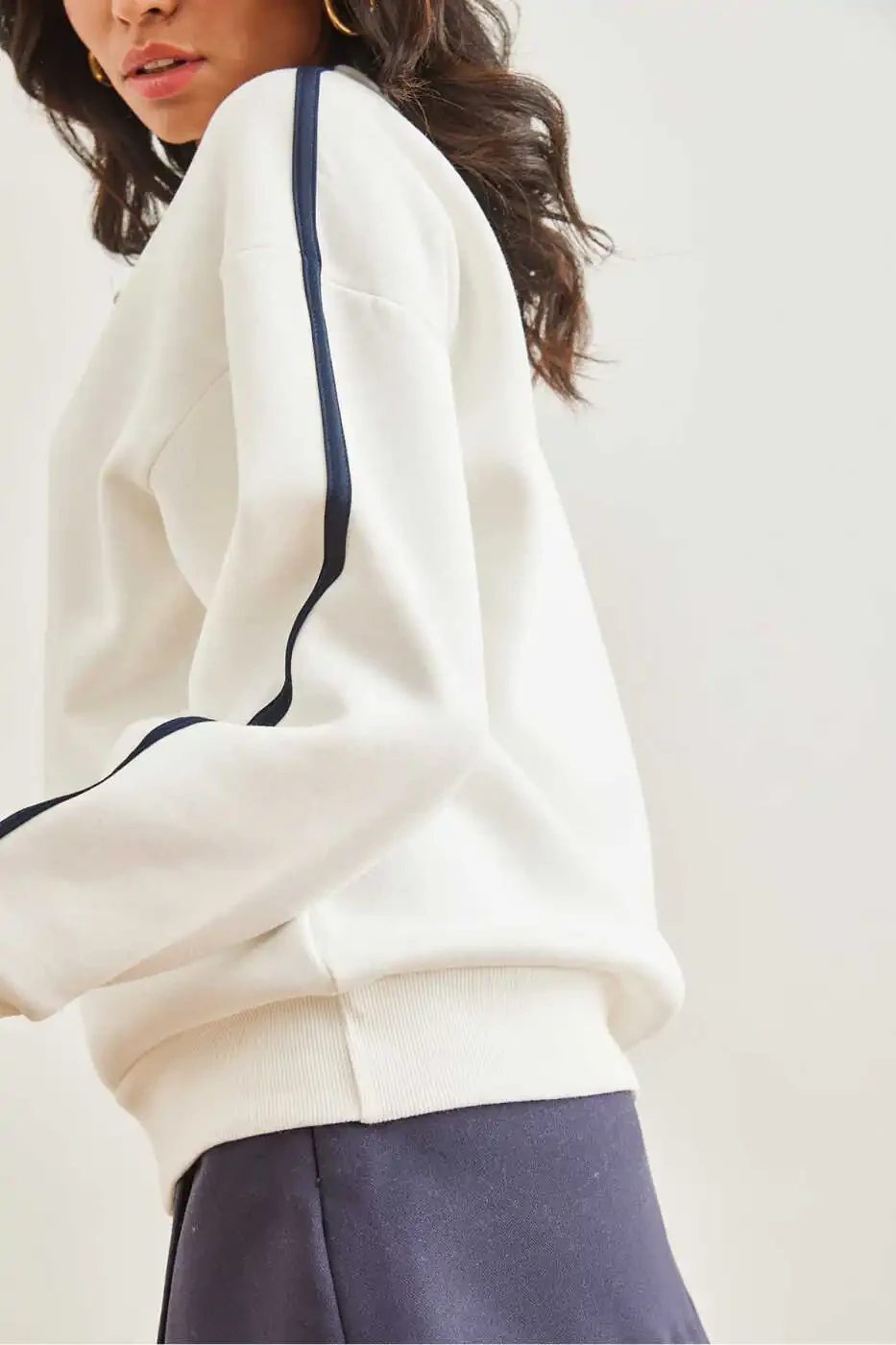 женский свитшот, белый свитшот, свитшот с полосой на рукаве, свитшот с чертополохом, толстый свитшот