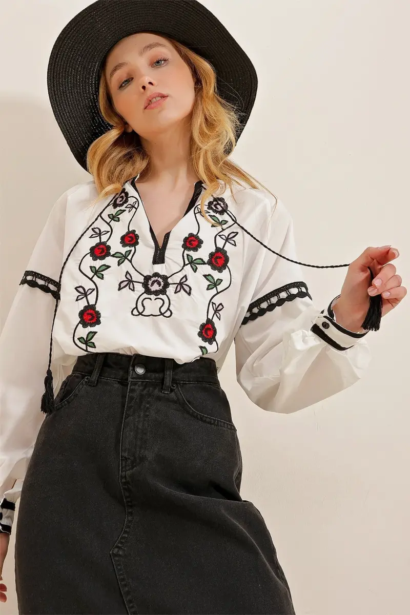 Дополните свой стиль женской белой блузкой с вышивкой и бахромой!