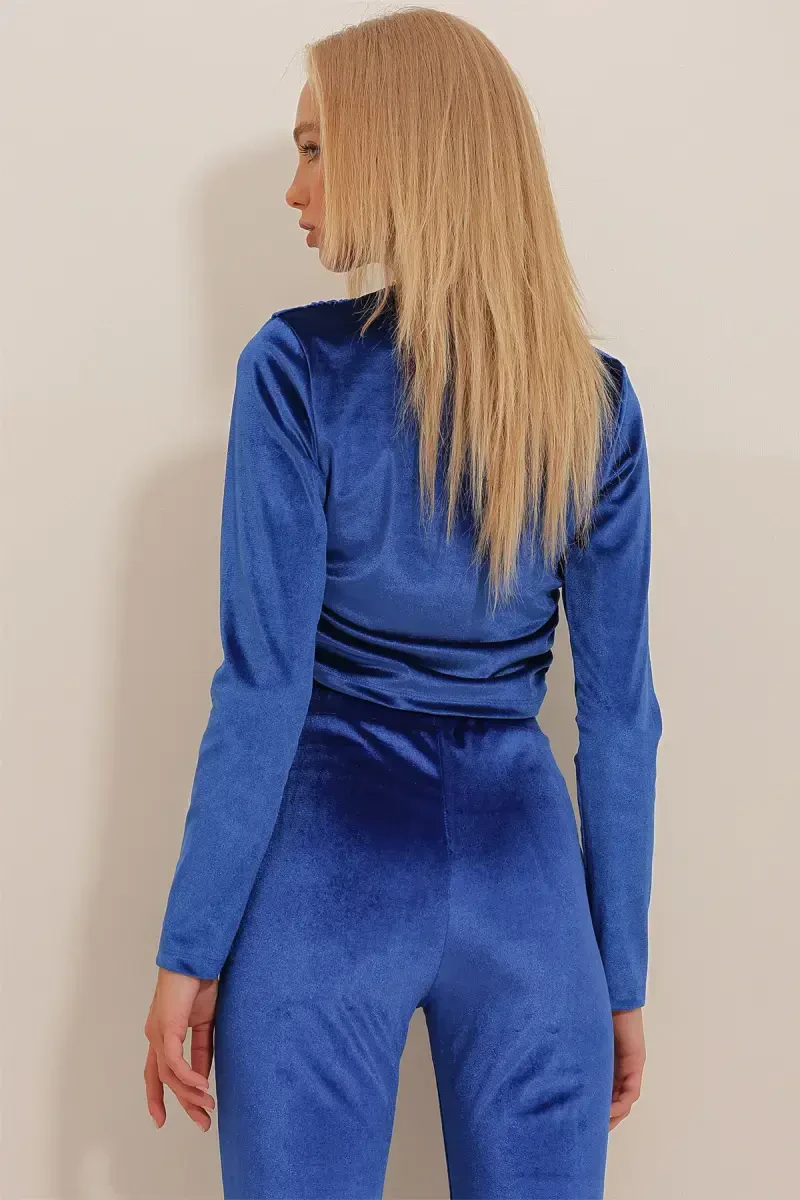 Женская укороченная велюровая блузка-боди с запахом и круглым вырезом горловины цвета сакс ALC-X10947-Saks станет незаменимой вещью в вашем гардеробе! Благодаря ткани средней плотности, эта блузка идеально подходит для переходного периода, а ее простой и элегантный внешний вид легко дополнит любой ваш образ. Состав материала: 50% полиэстер, 40% хлопок и 10% лайкра обеспечивает как эластичность, так и долговечность. Укороченный крой создает современный и динамичный силуэт, а силуэт запахом изящно облегает фигуру. Круглый вырез горловины обеспечивает удобную посадку, а также позволяет легко создать стильный образ для повседневной носки. Сочетайте ее с джинсами или юбками, и вы всегда будете выглядеть стильно. Эта блузка - универсальный предмет гардероба для любого возраста, который можно с легкостью носить в повседневной обстановке. Велюровая ткань придает ощущение роскоши, а простота базовой коллекции позволяет ей легко вписаться в любой гардероб. Длинные рукава обеспечивают дополнительную защиту в холодную погоду, сохраняя тепло и не жертвуя стилем. Блузка проста в уходе и прослужит вам долго, если вы будете следовать инструкциям по стирке. Женская укороченная велюровая блузка-боди с запахом и круглым вырезом горловины цвета сакс - идеальный выбор для женщин, которые ищут стиль и комфорт в одном флаконе, она будет сопровождать вас в любой момент. Эта блузка, подходящая как для повседневной носки, так и для особых случаев, станет одной из самых любимых вещей в вашем гардеробе. Этот топ, привлекающий внимание своим современным кроем, качественной тканью и стильным дизайном, дополнит ваш стиль и придаст вам уверенности. Наслаждайтесь тем, что всегда будете стильной и комфортной с этим эксклюзивным дизайном от Allday. Эта блузка - не просто одежда, это заявление о стиле. Универсальная и вневременная вещь, которая должна быть в вашем гардеробе. Вы можете создавать разные образы, надевая ее отдельно или в сочетании с пиджаком или кардиганом. Эта блузка, которая позволит вам выглядеть стильно и элегантно в любой ситуации, станет звездой вашего гардероба. Помните, стиль кроется в деталях, и эта блузка станет идеальным штрихом к вашему стилю.