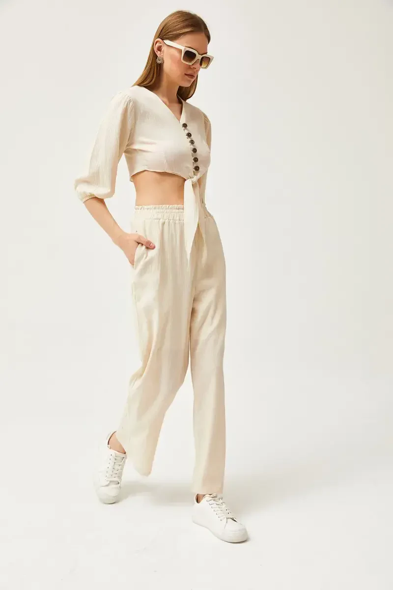 Женский блузон с каменным верхом на пуговицах и брюки с нижними карманами Kete - это вневременной и стильный комплект, который претендует на то, чтобы стать незаменимым в каждом гардеробе. Этот костюм, тщательно подготовленный компанией Oalolook official, сочетает в себе комфорт и современный дизайн, обеспечивая комфорт и стильный внешний вид в течение всего дня. Этот специальный дизайн предлагается по акционной цене и имеется в ограниченном количестве. Этот уникальный костюм с блузкой прямого кроя и брюками с карманами предлагает элегантность для всех возрастных групп. Благодаря 100% хлопчатобумажной ткани ваша кожа дышит в течение всего дня, а детали с круглым вырезом придают блузке современный и стильный вид. Дизайн блузки на пуговицах обеспечивает удобство ношения и придает общему эстетическому виду нарядный вид. Карманы по бокам брюк увеличивают их полезность, позволяя носить с собой предметы первой необходимости. Зауженный крой брюк удлиняет и стройнит ноги, создавая современный силуэт. Обычный крой обеспечивает удобство ношения, не ограничивая свободу движений. Этот костюм можно легко носить как в повседневных делах, так и на особых встречах, он отдает предпочтение комфорту, не жертвуя при этом стилем. Этот костюм может быть предложен разными продавцами, что дает вам возможность сравнить цены и найти наиболее подходящий вариант. Вы можете получить лучший опыт покупок, обратив внимание на оценки продавцов, условия доставки, рекламные акции и варианты доставки. Вы можете заказать не более 10 единиц товара, что позволит вам поделиться этим специальным костюмом со своими близкими. Благодаря простым в уходе инструкциям по стирке вы можете обеспечить долговечность вашего костюма. Стандартный тип рукава и тканая ткань позволяют легко использовать его в переходные периоды. Женский каменный верх с пуговицами, блузка и брюки с нижними карманами Kete - идеальный выбор для женщин, которые ищут сочетание стиля и комфорта. Добавив этот костюм в свой гардероб, вы сможете привлечь к себе внимание в любой обстановке.