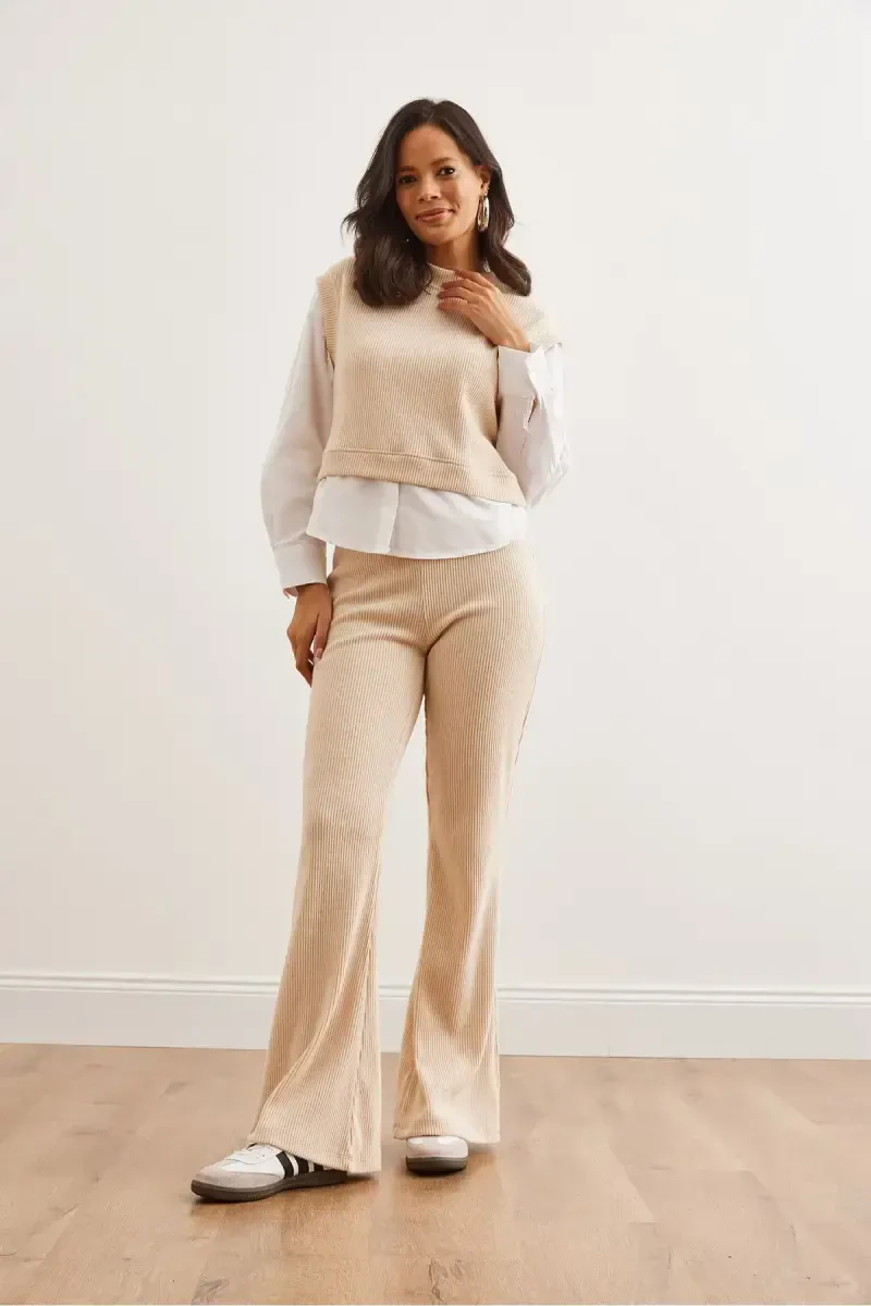 Женский комплект: блузка с верхом в виде рубашки, украшенная камнями, и леггинсы-клеш. Этот эксклюзивный комплект, сочетающий в себе элегантность и комфорт, станет незаменимым элементом вашего гардероба. Блузка с верхом в виде рубашки, украшенная камнями, и леггинсы-клеш позволят вам выделиться как в повседневной жизни, так и в особых случаях.Особенности верхней рубашки:* Высококачественная дышащая ткань* Элегантные детали с камнями* Удобный крой* Длинные рукава* Различные варианты размеровОсобенности нижних леггинсов:* Эластичная и мягкая на ощупь ткань* Клеш* Высокая талия* Облегающий дизайн* Структура, обеспечивающая свободу движений