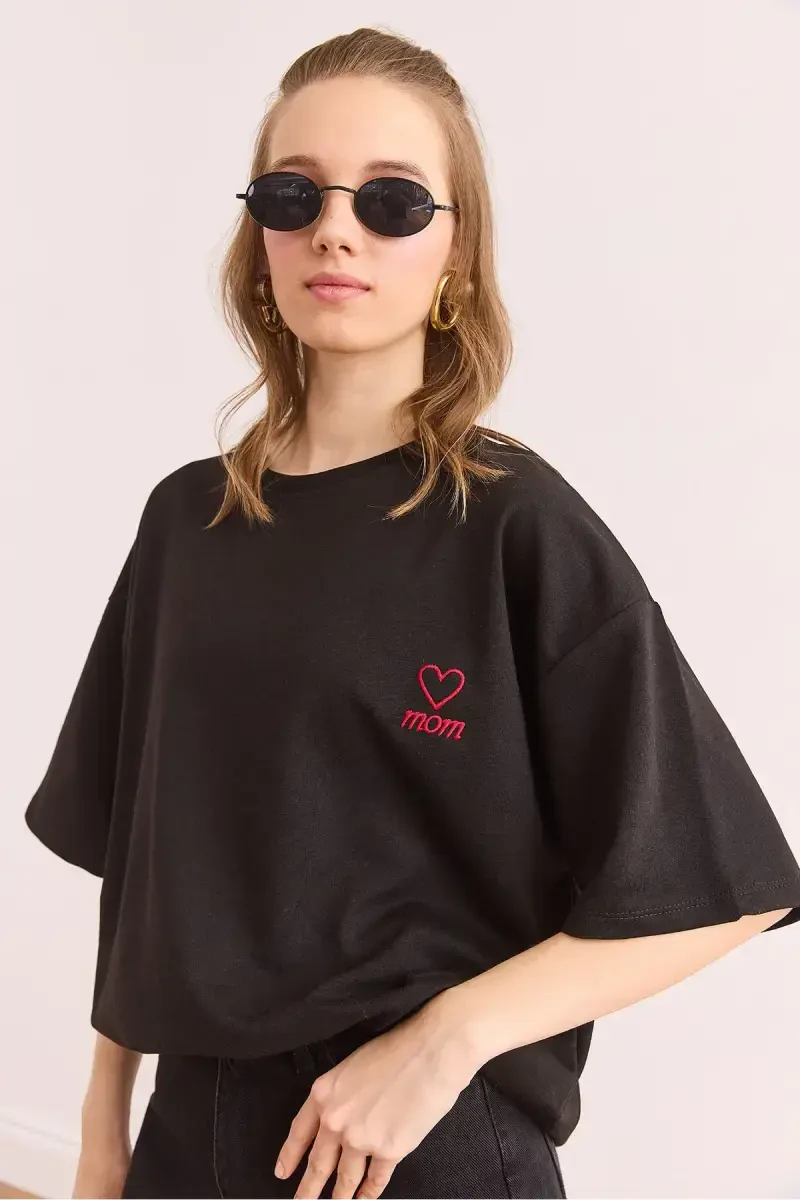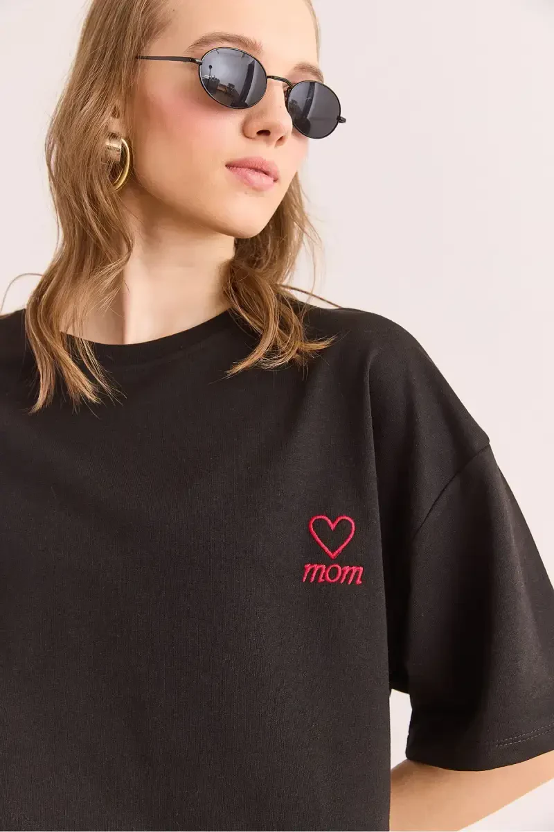 • "Mom" nakışlı tasarım