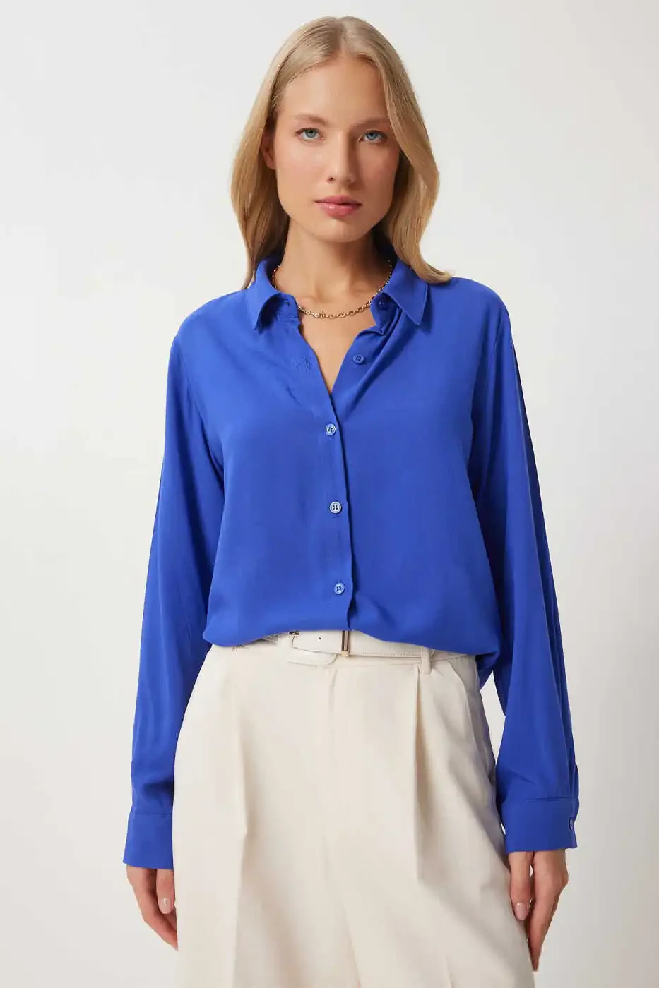 Женская сиреневая вискозная рубашка свободного кроя — это дизайн, который сочетает в себе элегантность и комфорт и станет одной из незаменимых вещей вашего гардероба. Благодаря 100% вискозной ткани вы будете чувствовать легкое и мягкое прикосновение на себе в течение всего дня. Завораживающий оттенок фиолетового оживит любую вашу комбинацию, а удобная посадка не ограничит вашу свободу движений. Это универсальная вещь, которая подойдет для любой обстановки, будь то повседневное использование или особый ужин.Описание товараЖенская сиреневая вискозная рубашка свободного кроя — это специальный дизайн, отражающий стильный и удобный выбор современной женщины. Мягкая вискозная ткань обеспечивает комфорт в течение всего дня, а удобный крой рубашки позволяет вам выглядеть стильно, не ограничивая свободу движений. Яркость фиолетового цвета придаст энергии любой вашей комбинации и поможет создать привлекательный образ. Эта рубашка — отличный вариант как для повседневного использования, так и для особых случаев. Вы можете создать профессиональный образ, сочетая ее с элегантной юбкой или брюками в офисе, или выбрать непринужденный стиль, сочетая ее с джинсами и кроссовками, когда встречаетесь с друзьями в выходные. Дышащая структура вискозной ткани сохраняет прохладу в теплую погоду и создает приятное ощущение тепла в прохладную погоду. Свободный крой рубашки мягко облегает ваши формы и помогает создать безупречный силуэт. Эта рубашка, разработанная для длительного использования, останется вашей любимой вещью в гардеробе на долгие годы при правильном уходе. Ее можно легко сочетать с различными оттенками фиолетового или нейтральными цветами. Вы можете подчеркнуть свой личный стиль, дополнив ее аксессуарами. Вы можете добавить элегантный штрих с помощью простого ожерелья или придать своей комбинации другой вид с помощью смелого ремня. Женская сиреневая вискозная рубашка свободного кроя — это универсальная вещь, которая позволит вам всегда оставаться стильной и чувствовать себя комфортно. Эта рубашка, которую можно носить в любое время года, станет незаменимой вещью в вашем гардеробе.Характеристики продукта* 100% вискозная ткань* Свободный крой* Яркий фиолетовый цвет* Подходит для повседневного использования и особых случаев* Дышащая структура ткани* Свободный крой* Легко сочетается* Долговечность* Легкое и мягкое прикосновение* Подходит для ношения в любое время годаДополнительная информацияНа модели размер S/36. Чтобы ваш продукт оставался как новым в течение длительного времени, рекомендуется следовать инструкциям по стирке, указанным на этикетке. Старайтесь стирать цветные изделия вместе с вещами аналогичных цветов. Избегайте использования отбеливателя. Вы можете гладить при низкой температуре.