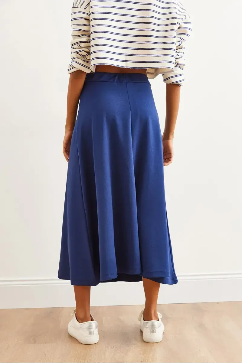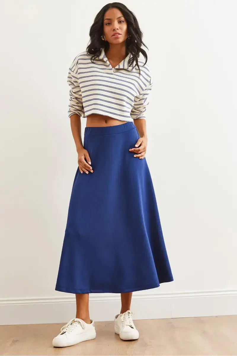 Эта юбка, отражающая благородство и спокойствие темно-синего цвета, легко сочетается с любым нарядом. Вы можете создавать разные стили, комбинируя ее с базовой футболкой и кроссовками для повседневного шика или с элегантной блузкой и туфлями на каблуках для особого случая. Юбка-клеш не стесняет движений и мягко подчеркивает фигуру, создавая приятный силуэт. Мягкая ткань с модальным эффектом нежно касается вашей кожи и обеспечивает комфорт в течение всего дня. Дышащая структура модальной ткани предотвращает потоотделение и обеспечивает ощущение свежести, особенно в жаркую погоду. Легкий блеск ткани добавляет юбке элегантности, подчеркивая глубину темно-синего цвета. Детали швов юбки являются признаком качественной работы и гарантируют длительный срок службы. Долговечность ткани предотвращает такие проблемы, как усадка или выцветание после стирки. Эта юбка идеально подходит как для повседневной носки, так и для особых случаев. Вы можете с комфортом носить ее в офисе, на шоппинге, на ужине или на вечеринке. Вы можете легко изменить стиль юбки с помощью выбора аксессуаров и отразить свой личный стиль. Например, вы можете подчеркнуть талию юбки ремнем, чтобы создать более женственный вид. Или вы можете сделать юбку более подходящей для особого случая с помощью элегантного ожерелья и сережек. Эта юбка не только предлагает элегантный вид, но и обеспечивает практичность. Она легко гладится и устойчива к складкам. Благодаря этому вы всегда будете выглядеть ухоженно и элегантно даже после напряженного дня. Женская темно-синяя юбка-клеш из мягкой ткани с модальным эффектом предлагает вам бесконечные возможности для создания стиля благодаря тому, что ее можно легко комбинировать с другими вещами в вашем гардеробе. Вы обязательно должны попробовать эту юбку, чтобы создать свой собственный стиль и привлекать внимание в любой обстановке. Эта юбка — не просто одежда, это еще и способ самовыражения. Это идеальный выбор, чтобы отразить свой стиль, чувствовать себя хорошо и всегда выглядеть элегантно. Помните, что элегантность скрывается в деталях, и эта юбка предлагает вам элегантность в каждой детали. Эта юбка, которая подчеркнет вашу красоту и элегантность, станет самой любимой вещью в вашем гардеробе.
