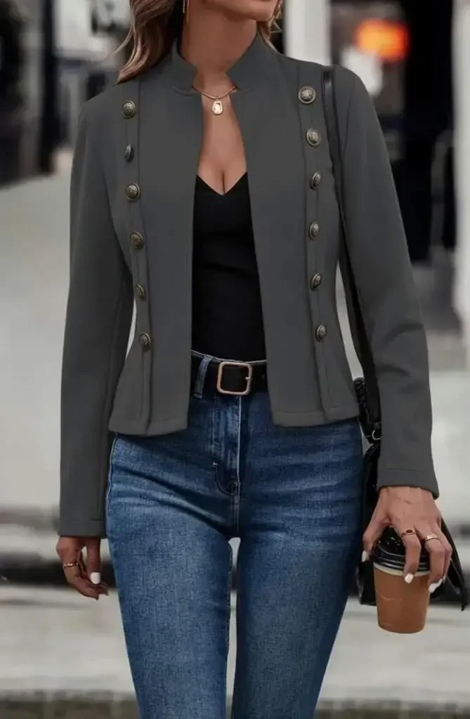 Ощутите элегантность и комфорт в сочетании с женской курткой из короткой замши с длинными рукавами, воротником-стойкой и боковыми пуговицами. Эта эксклюзивная куртка станет незаменимой вещью в вашем гардеробе. Замшевая текстура приятно ощущается на коже, а воротник-стойка придает вашему образу другое измерение. Детали пуговиц по бокам придают куртке современный и неповторимый вид. Благодаря короткому крою она легко сочетается как со спортивными, так и с классическими нарядами. Вы можете подчеркнуть свой стиль, сочетая ее с джинсами в повседневной жизни или с элегантным платьем на светском мероприятии. На модели изделие размера M/38, параметры модели: рост: 165 см, вес: 55 кг, грудь: 90 см, талия: 72 см, бедра: 100 см. Эта информация даст вам представление о том, как изделие будет смотреться на вас. Куртка с длинными рукавами согреет вас в прохладную погоду и не позволит вам пожертвовать своим стильным внешним видом. Воротник-стойка придает куртке более элегантный и современный вид. Детали пуговиц по бокам добавляют динамичности дизайну куртки и создают неповторимую атмосферу. Короткая замшевая куртка — это универсальная вещь, которую можно носить в любое время года. Вы можете носить ее самостоятельно весной и осенью, а зимой — надевать поверх толстого свитера или блузки, чтобы оставаться стильной и согреваться. Замшевый материал обогащает текстуру куртки и придает ей роскошный вид. Куртка доступна в различных цветовых вариантах, поэтому вы можете выбрать тот, который лучше всего соответствует вашему стилю. С этой стильной и практичной курткой, которая обязательно должна быть в вашем гардеробе, вы привлечете к себе всеобщее внимание в любой обстановке. Эта куртка, сочетающая в себе комфорт и элегантность, — один из лучших способов выразить свой стиль. Помните, что наряды, составленные из правильных вещей, всегда выводят вас на шаг вперед. Эта куртка — одна из тех самых вещей!