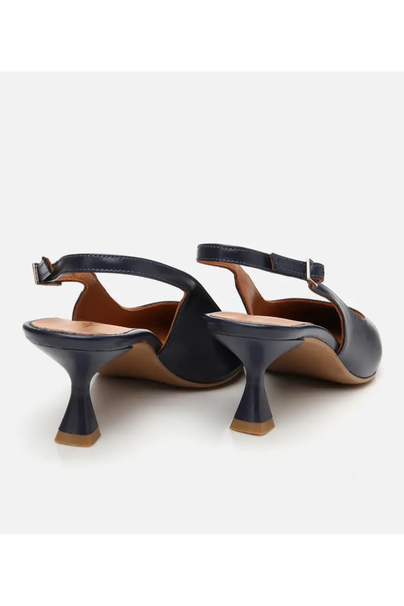 Женская обувь, кожаная обувь, темно-синяя обувь, туфли на каблуке, гибкая подошва, открытая пятка, удобная обувь, стильная обувь, повседневная обувь, женская мода