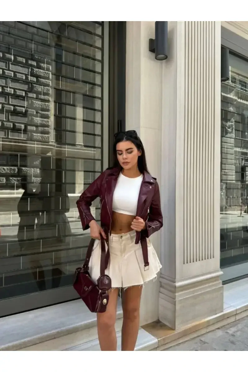 Бордовая кожаная куртка | Бесшовная куртка женская из натуральной кожи