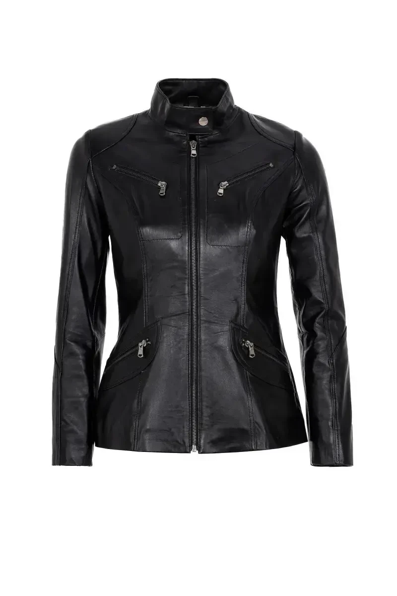 Отразите свой стиль и завершите свой элегантный образ с помощью женского кожаного пиджака Maeve с застежкой на кнопки и воротником-стойкой.