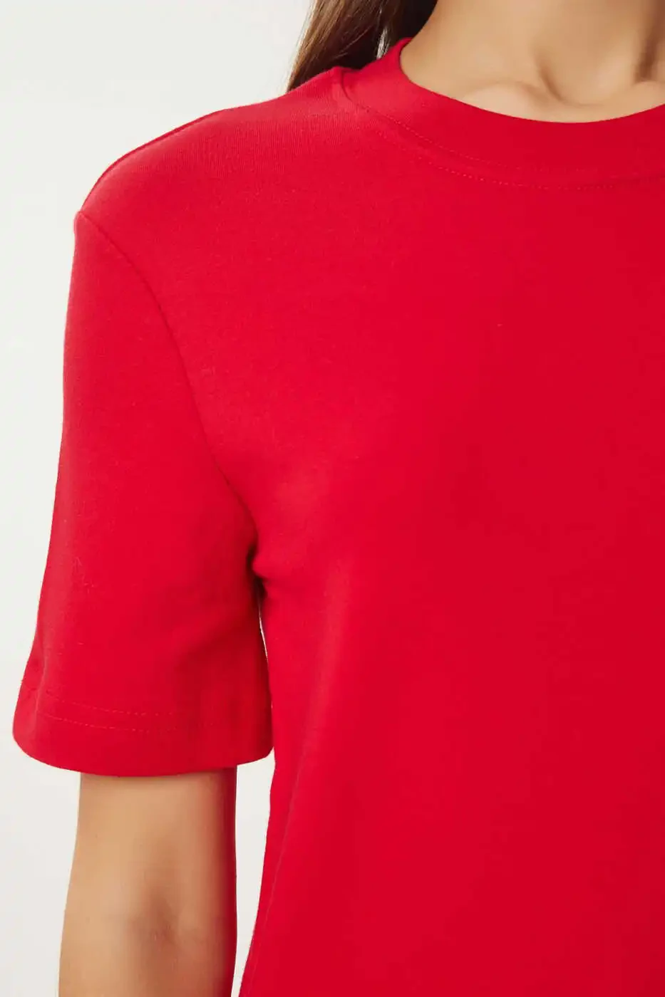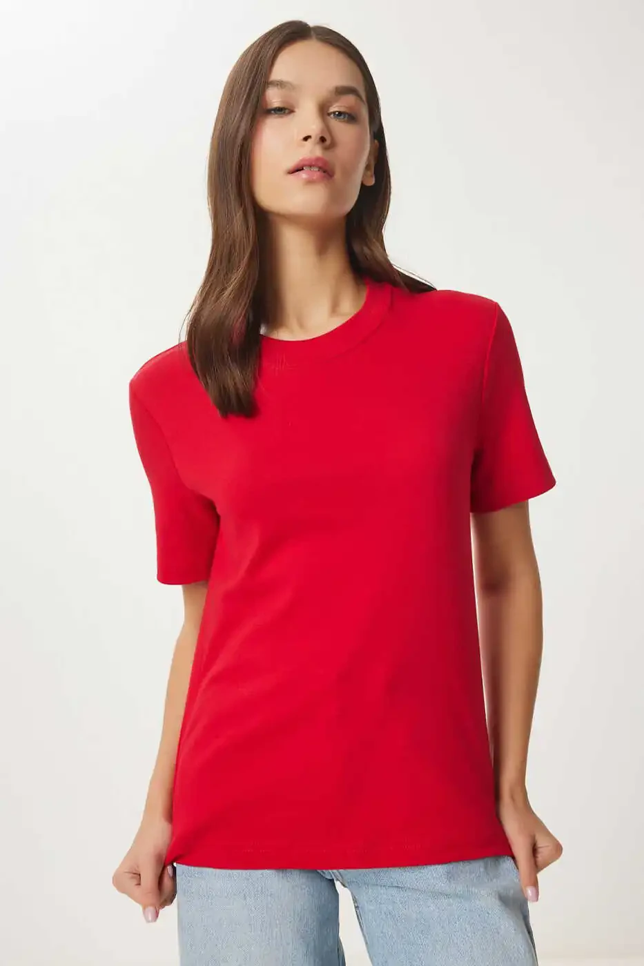 Kadın Kırmızı Pamuklu Basic Örme T-Shirt AG00001, gardırobunuzun vazgeçilmezi olacak zamansız bir parça. Hem rahatlığı hem de şıklığı bir arada sunan bu t-shirt, günlük kullanımın yanı sıra özel kombinlerinizde de size eşlik edecek. %100 pamuk içeriği sayesinde gün boyu nefes alabilen, yumuşak bir dokunuş sağlar. Kırmızı rengin enerjisi ve canlılığı ile stilinize dinamizm katarken, basic tasarımı her türlü kıyafetle kolayca uyum sağlamasına olanak tanır.Bisklet yaka detayı, t-shirt'e modern bir hava katarken, esnek yapısı hareket özgürlüğünüzü kısıtlamaz. İster jeanlerle spor bir görünüm elde edin, ister eteklerle daha şık bir kombin oluşturun, bu t-shirt her tarza uyum sağlayacaktır.Ürünün boyu 59 cm, kol boyu ise 23 cm'dir. Bu ölçüler, t-shirt'ün ideal bir kesime sahip olmasını sağlar. Stüdyo çekimlerinde renkler ışık farklılığından dolayı değişiklik gösterebilir, bu nedenle ürünün gerçek rengi ekranınızda gördüğünüzden biraz farklı olabilir.Kadın Kırmızı Pamuklu Basic Örme T-Shirt AG00001, kaliteli malzeme ve işçiliği ile uzun ömürlü bir kullanım sunar. Gardırobunuzun temel parçalarından biri olacak bu t-shirt, her mevsim rahatlıkla giyebileceğiniz bir seçenektir. Şıklığı ve konforu bir arada arayan kadınlar için ideal bir tercih olan bu t-shirt, stilinizi tamamlayacak ve size her zaman iyi hissettirecektir.Bu t-shirt, Trendyol güvencesiyle sunulmaktadır. Birçok farklı satıcı tarafından satışa sunulabilen bu ürün, satıcı puanlarına, teslimat statülerine, promosyonlara, kargo durumuna ve hızlı teslimat seçeneklerine göre sıralanmaktadır. Bu sayede, size en uygun satıcıyı seçerek güvenli bir alışveriş deneyimi yaşayabilirsiniz. Üründen en fazla 10 adet sipariş verilebilir, bu limitin üzerindeki siparişler Trendyol tarafından iptal edilebilir. Belirlenen bu limit, kurumsal siparişlerde geçerli olmayıp, kurumsal siparişler için farklı limitler belirlenmektedir.Ayrıca, ürünü beğenmediğiniz takdirde 15 gün içinde ücretsiz iade edebilirsiniz. İade koşulları hakkında detaylı bilgi için Trendyol'un ilgili sayfasına göz atabilirsiniz. Kadın Kırmızı Pamuklu Basic Örme T-Shirt AG00001, hem kendiniz hem de sevdikleriniz için harika bir hediye seçeneği olabilir. Şimdi sipariş verin ve stilinizi yansıtın!