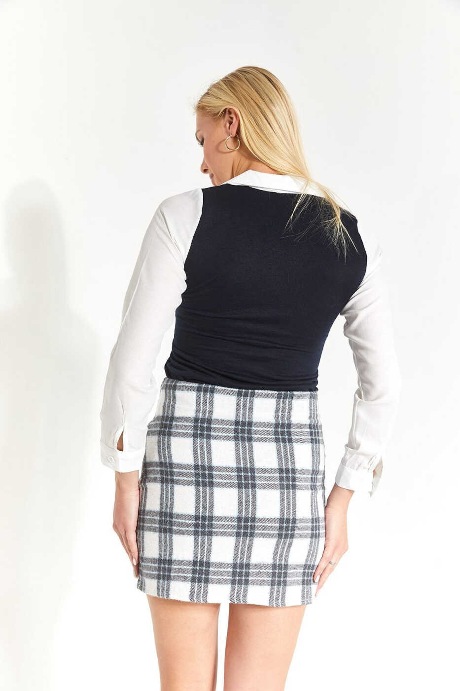 Женская мини-юбка в клетку с голубым оттенком, сшитая со шлицами, - это стильная и практичная деталь, которая должна быть в гардеробе каждой женщины. Сочетайте юбку с блузками, футболками и свитерами разных цветов и узоров, чтобы добавить уникальности своему стилю. Наслаждайтесь созданием стильного и комфортного образа как для повседневной жизни, так и для особых случаев.