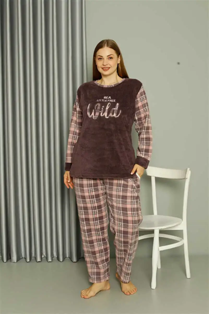 Женский пижамный комплект Akbeniz Welsoft Polar большого размера с норкой 808040