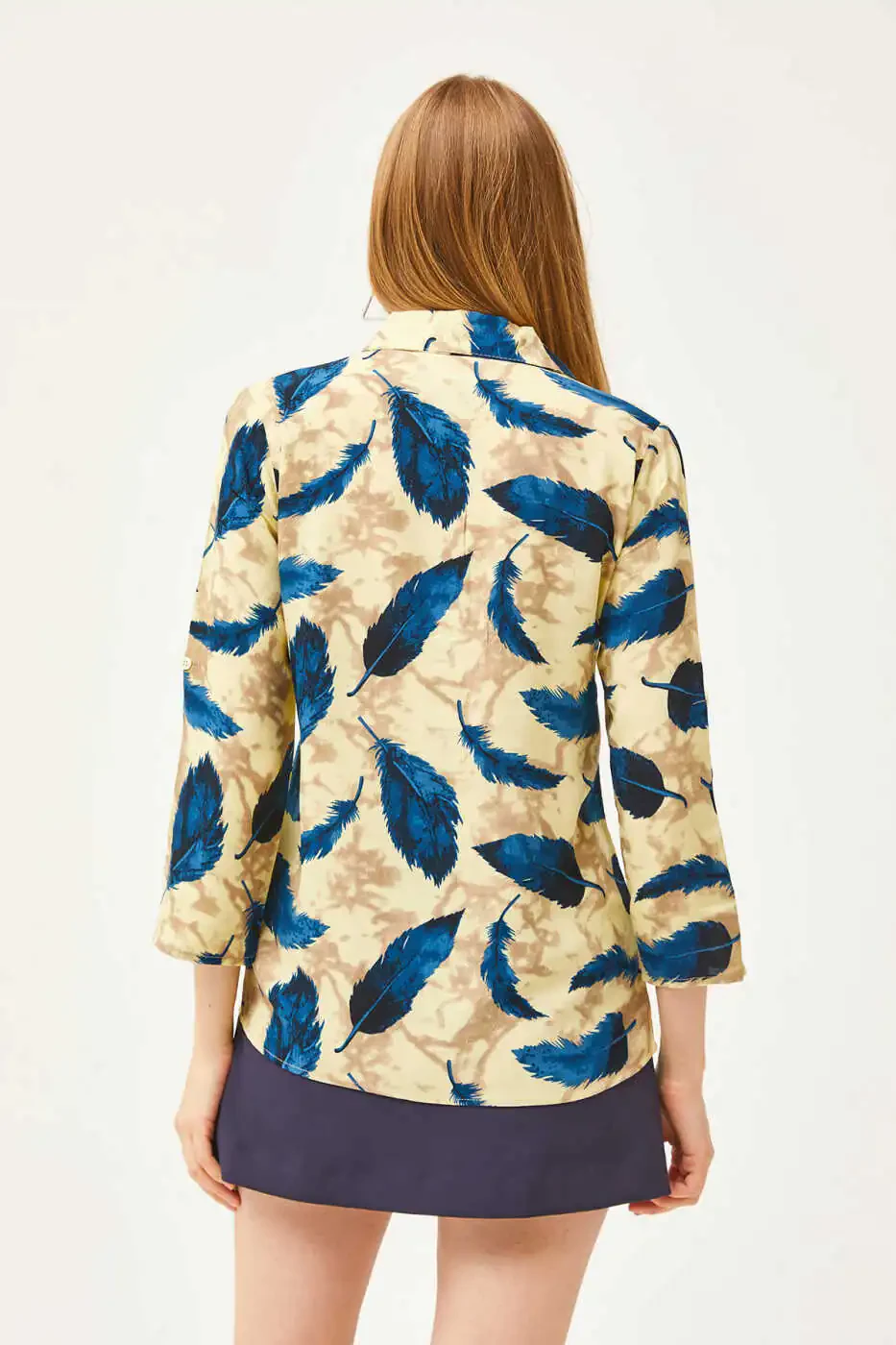 Женская вискозная рубашка с желтыми листьями - идеальный выбор для женщин, которые хотят выглядеть элегантно и стильно. Это вещь, которую вы можете носить с комфортом везде, от повседневной жизни до особых случаев. Рубашка, обеспечивающая комфорт на весь день благодаря мягкой и воздухопроницаемой текстуре, помогает вам дополнить свой стиль своим рисунком желтых листьев.