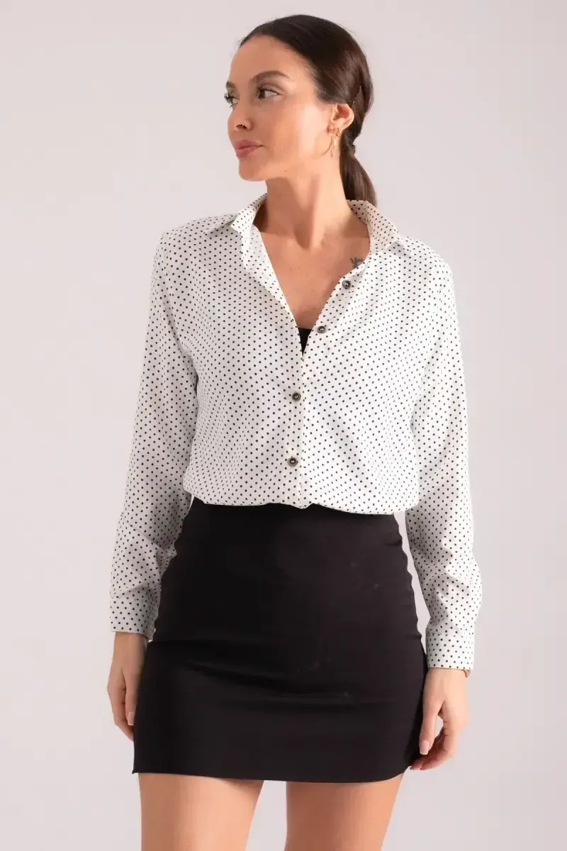 Женская рубашка с белым горошком с длинным рукавом ARM-22K001064 - Стильная и комфортная
