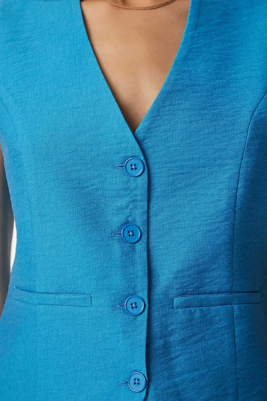 Сочетайте стиль и комфорт с женским стильным жилетом TO00067 с V-образным вырезом синего цвета! Этот стильный жилет, отправляемый Trendyol, имеет простой и элегантный вид благодаря однотонному рисунку, а дизайн с V-образным вырезом создает женственный силуэт. Благодаря классическому крою вы будете чувствовать себя комфортно, а жилет идеально подойдет к вашей фигуре. Стандартная длина рукава обеспечит вам вневременную элегантность, а жилет станет незаменимой вещью в межсезонье. Подкладка обеспечивает дополнительный комфорт и долговечность, а также согревает вас в прохладную погоду. Этот жилет с базовым силуэтом займет достойное место в любом гардеробе, легко сочетаясь с различными комплектами и предлагая вам неограниченные варианты стиля. Практичные карманы подчеркивают функциональность, а дизайн, подходящий для всех возрастов, понравится широкому кругу покупателей. Изготовленный из легко моющегося тканого материала, этот жилет также позволит вам сэкономить время на уходе. В наличии более 10 штук, товар предлагается по акционной цене. Вы можете заказать не более 10 единиц товара. Вы можете совершать покупки без лишних забот, воспользовавшись возможностью бесплатного возврата в течение 15 дней. Закажите сейчас и добавьте в свой гардероб стиль и комфорт!