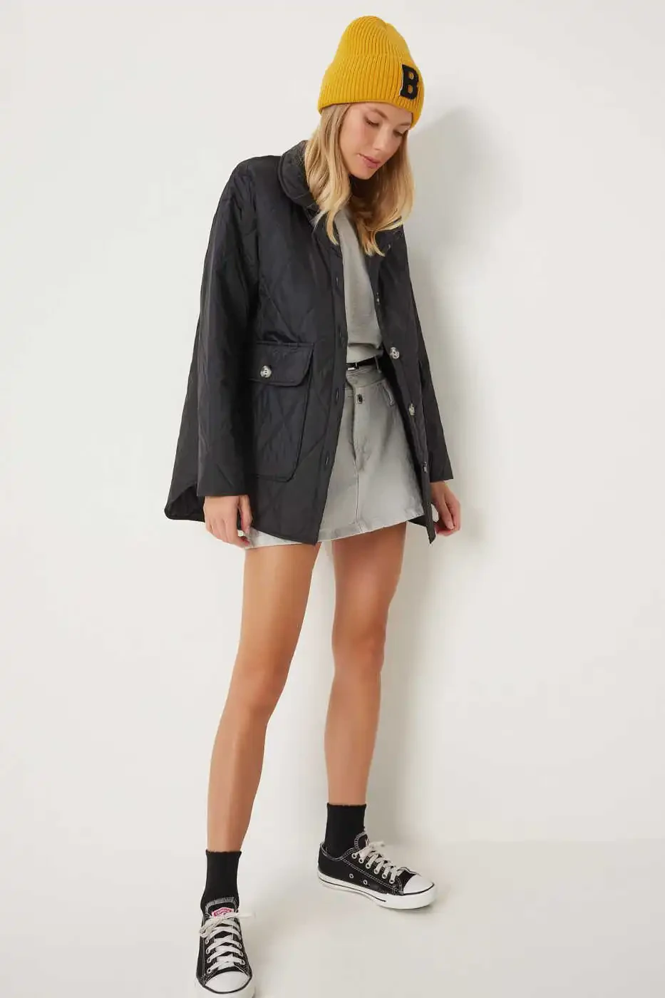 Сочетайте стиль и комфорт с женской стеганой курткой oversize с карманами черного цвета FO00001! Благодаря простому и элегантному дизайну эта куртка идеально подойдет к любому вашему наряду и станет незаменимой вещью в повседневной жизни. Удобная застежка на пуговицах позволяет легко надевать и снимать куртку, а прямой крой regular и oversize-силуэт обеспечивают свободу движений и современный внешний вид. Стеганая ткань согревает и обеспечивает комфортное использование. Куртка, изготовленная из качественного материала на 100%, гарантирует долговечность. Подробную информацию о материале и инструкции по стирке можно найти на внутренней этикетке. Вместительные карманы позволят вам безопасно хранить личные вещи. Благодаря дизайну, подходящему для всех возрастов, вы сможете наслаждаться вневременной элегантностью. Прочная тканая структура обеспечивает сохранение формы куртки надолго. Воспользуйтесь этим предложением с ограниченным количеством товара, отправляемым Trendyol по выгодной цене. Вы можете совершать покупки, не беспокоясь, благодаря 15-дневной бесплатной опции возврата. Почувствуйте себя особенной благодаря вневременной элегантности черного цвета и комфорту тренда oversize!