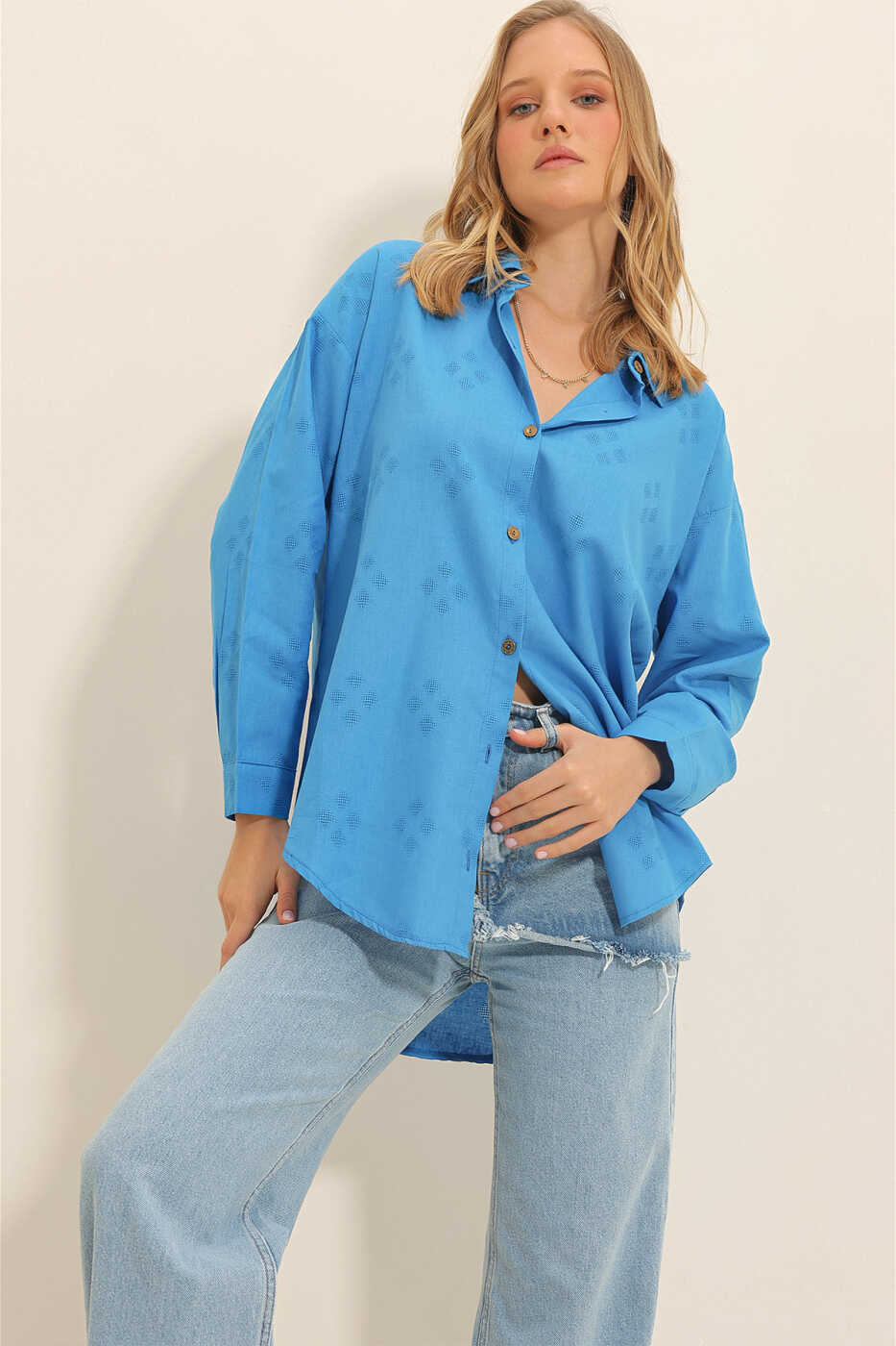 Эта свободная льняная рубашка сочетает в себе комфорт и стиль, что делает ее незаменимой для летнего сезона. Легкая и дышащая льняная ткань обеспечивает комфорт в течение всего дня, а ее синий узорный дизайн дополнит ваш стиль.