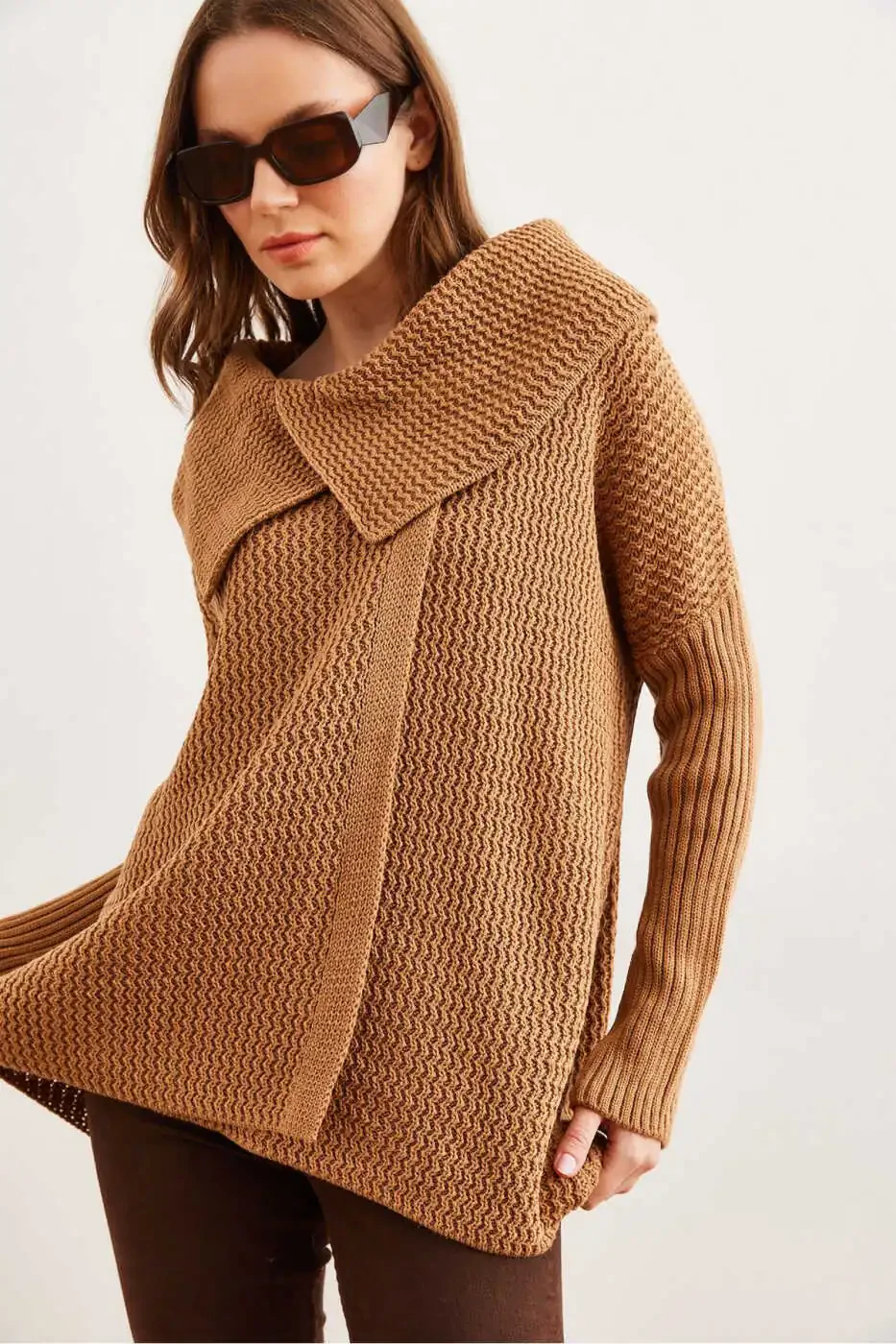 Женский кардиган табачного цвета с запахом и пуговицами HRK-19000326 | Trendyol