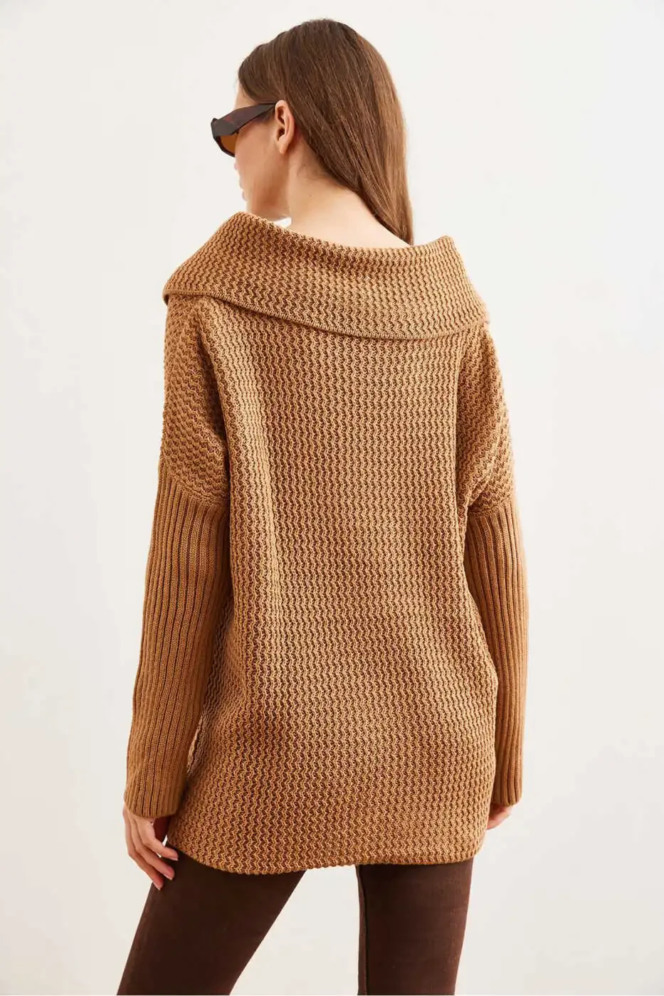 Женский кардиган, с запахом, на пуговицах, табачного цвета, HRK-19000326, Trendyol