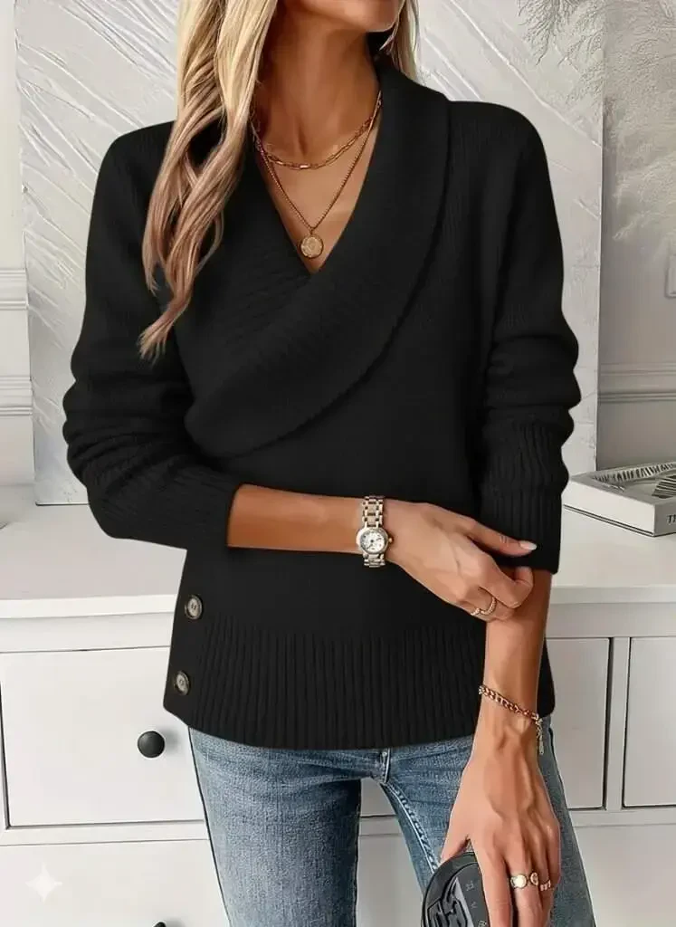 Женская трикотажная блузка с длинными рукавами, воротником и боковыми пуговицами