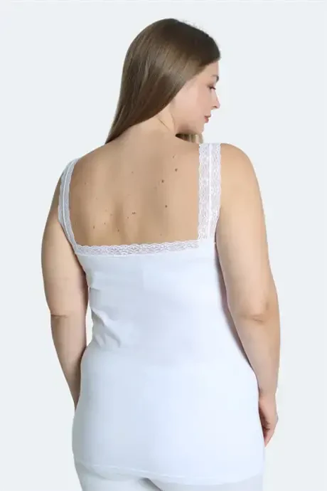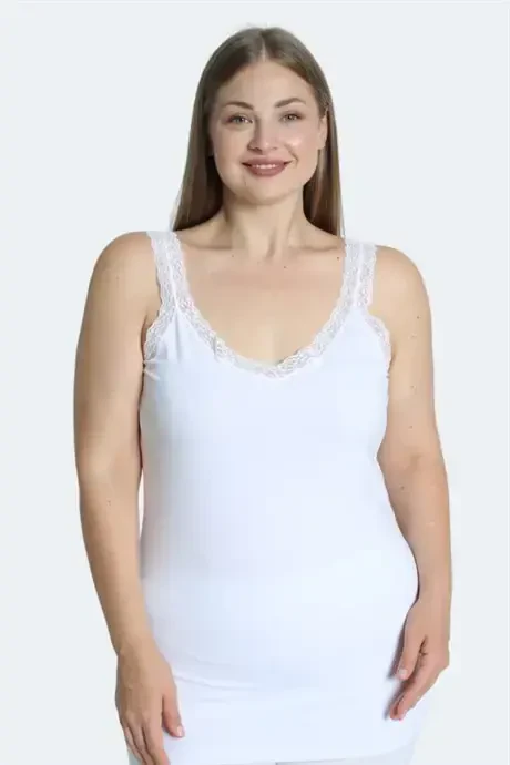 Майка для женщин большого размера | Хлопок белого цвета с кружевной отделкой | Удобная и эластичная