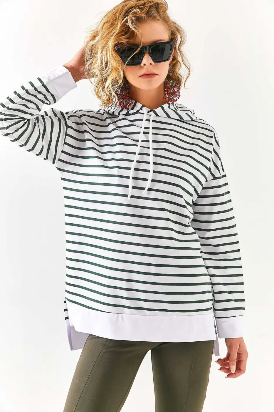 Женская худи, Худи цвета хаки, Белая худи, Худи в полоску, Худи с боковым разрезом