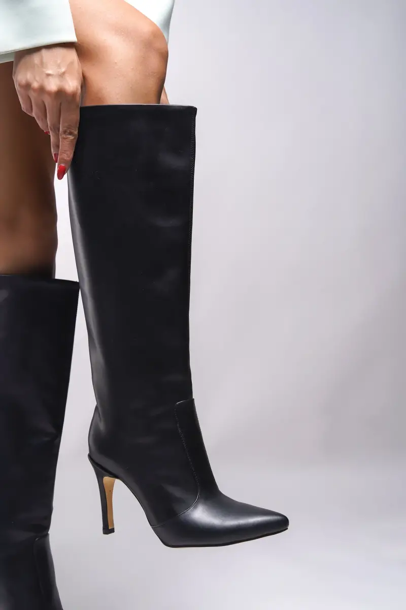 Женские сапоги Hilnaril на остром каблуке 00123000 Черная кожа идеально подходят для повседневной носки. Будь то поход в офис, ужин или создание стильного образа для особого случая, эти сапоги никогда не подведут. Их удобная и поддерживающая структура гарантирует, что вы не будете жертвовать комфортом даже при длительном использовании.