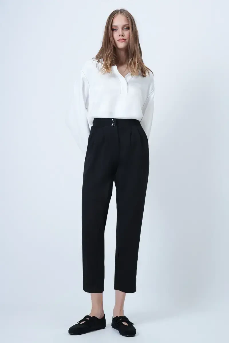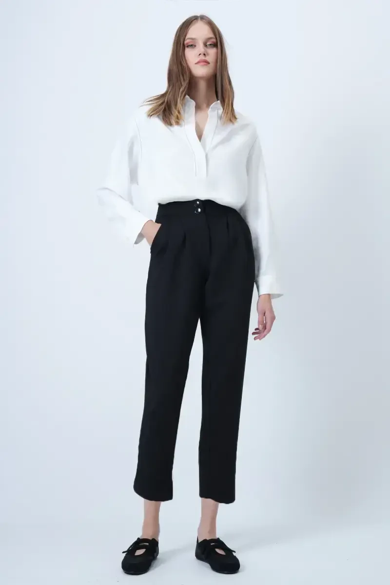Эти брюки, изготовленные из высококачественной ткани, обеспечивают комфорт в течение всего дня. Их легкая текстура и дышащая структура помогут вам оставаться в прохладе даже в теплую погоду. Черный цвет выделяется своей совместимостью с любой комбинацией.