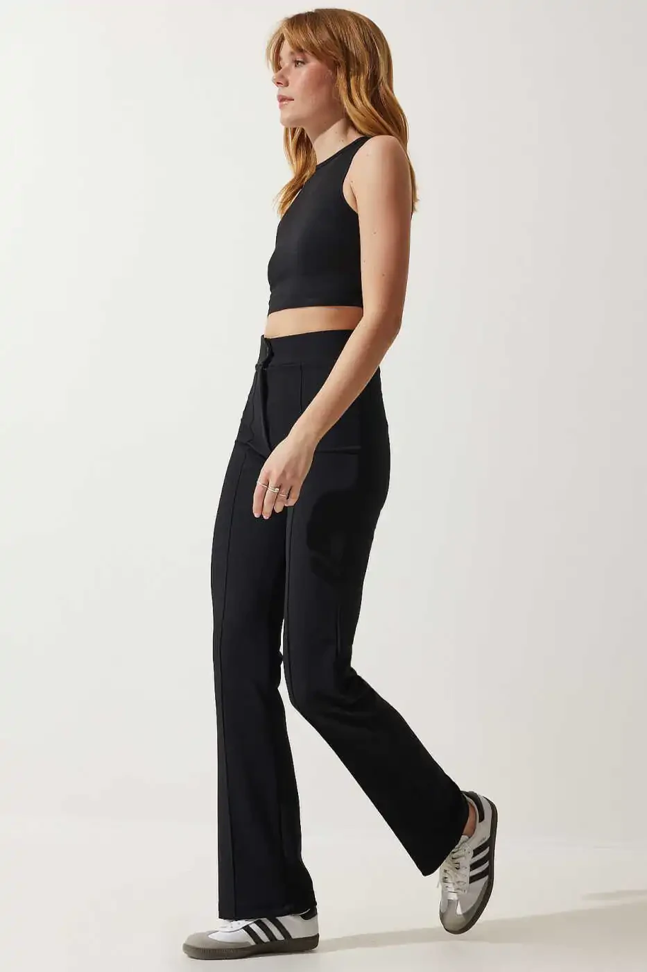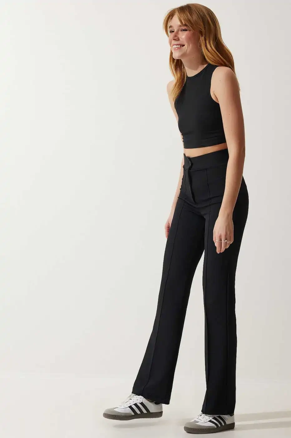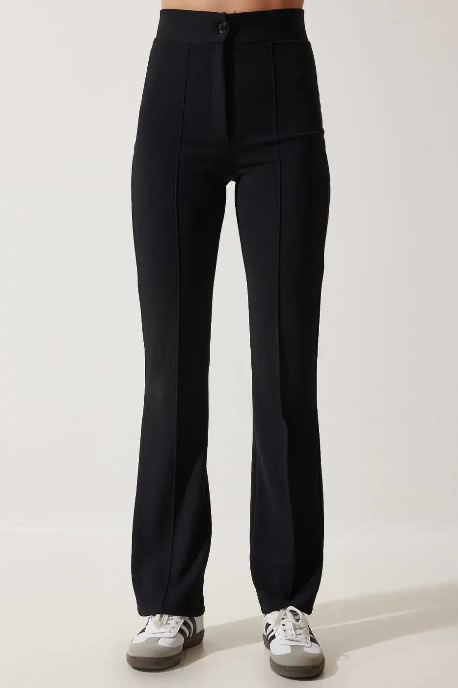Подчеркивает фигуру благодаря высокой посадке. Эластичная ткань обеспечивает свободу движений в течение всего дня. Удобная трикотажная ткань обеспечивает комфортное использование. Черный цвет легко сочетается с любым нарядом. Идеально подходит как для повседневной носки, так и для особых случаев.