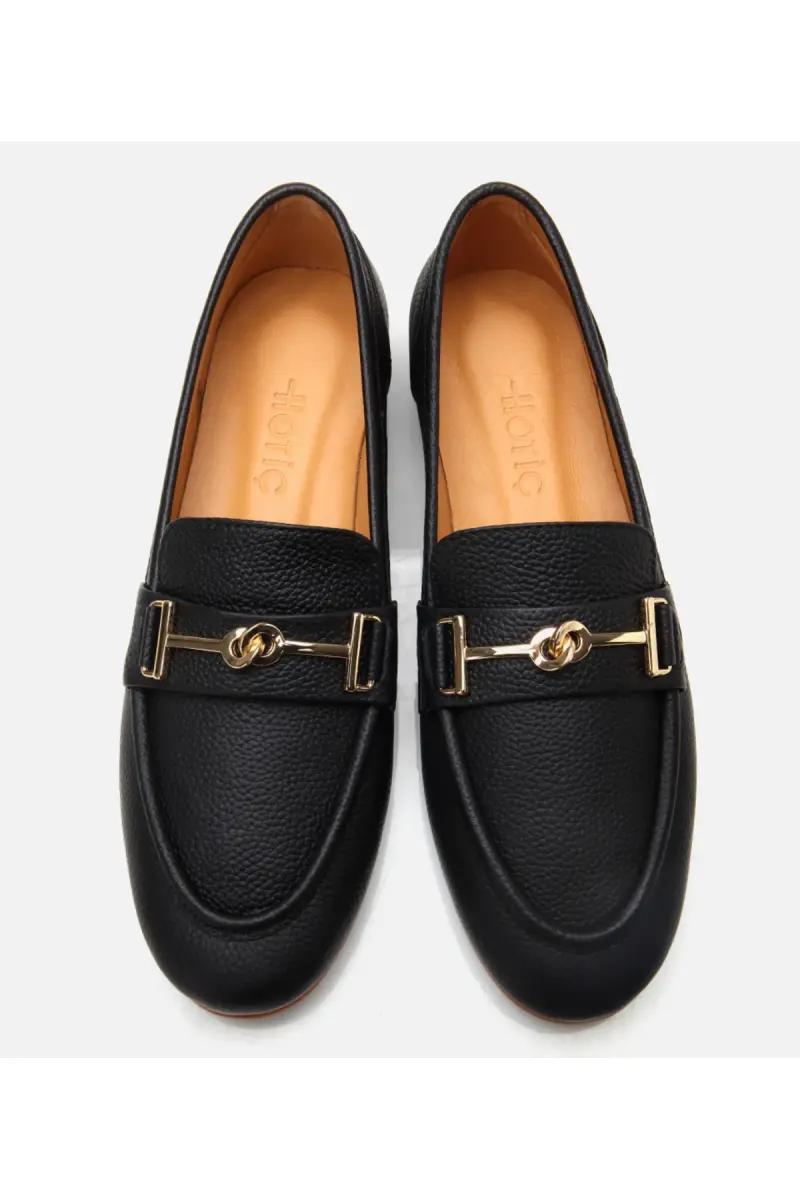 Женские кожаные черные классические лоферы с пряжкой - ЧЕРНЫЙ