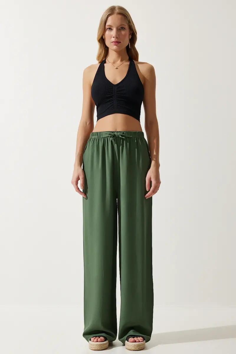 Женские летние вискозные брюки-палаццо цвета хаки EN00610-Haki – отличный кандидат на то, чтобы стать незаменимой частью вашего летнего гардероба! Благодаря легкой и дышащей ткани из 100% вискозы эти брюки обеспечивают высочайший комфорт даже в жаркие летние дни. Однотонный узор позволяет легко сочетать их с любой верхней одеждой, а стильный дизайн привлечет к вам внимание в любой обстановке. Длинный крой изящно облегает ноги, создавая приятный силуэт, а прямой крой штанин придает современный и модный вид. Нормальная высота талии обеспечивает удобную посадку в течение всего дня, а тонкая ткань сохраняет прохладу и свежесть в жаркую погоду. Прямой крой обеспечивает удобство ношения, не облегая фигуру, а тканый материал повышает прочность и обеспечивает длительный срок службы. Являясь частью базовой коллекции, этот неподвластный времени предмет будет занимать свое место в вашем гардеробе долгие годы. Эти брюки, которые дополнят ваш стиль как в повседневной жизни, так и в особых случаях, сочетают в себе комфорт и элегантность. Их легко стирать в соответствии с инструкциями по стирке типа 1, поэтому ваши брюки останутся как новые. Независимо от того, сочетаете ли вы их с шикарной блузкой для особого случая или с удобной футболкой для повседневных занятий, эти брюки-палаццо всегда дополнят ваш стиль и придадут вам уверенности. Наслаждайтесь летом с этой универсальной вещью, которая должна быть в вашем гардеробе!