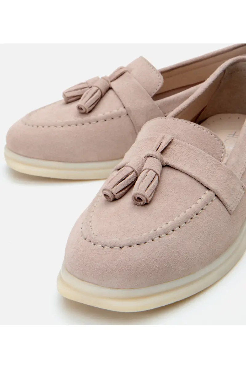 Хотите выглядеть стильно и заботиться о здоровье своих ног в суете повседневной жизни? Вот вариант именно для вас: женские бежевые замшевые лоферы с кисточками! Эти лоферы сочетают в себе современный дизайн и превосходный комфорт, позволяя вам чувствовать себя комфортно в течение дня и не жертвовать своим стилем. Теплый и естественный тон бежевого цвета идеально сочетается с любой одеждой. Носите ли вы их с джинсами для создания спортивного образа или сочетаете с юбками или платьями для создания более элегантного образа, эти лоферы всегда будут правильным выбором. Замшевая кожа повышает долговечность обуви и придает ей элегантный вид. Мягкая текстура замшевой кожи нежно облегает вашу ногу и обеспечивает комфорт в течение всего дня. Детали с кисточками добавляют движения и динамизма лоферам, позволяя вам выделиться из толпы. Эта маленькая деталь придает общему дизайну обуви игривый и стильный вид. Эти лоферы не только стильно выглядят, но и заботятся о здоровье ваших ног. Благодаря эргономичному дизайну они поддерживают естественную структуру ваших ног и помогают вам двигаться в течение дня, не уставая. Специальная подкладка на стельке смягчает ваши шаги и дарит ощущение комфорта при каждом шаге. Женские бежевые замшевые лоферы с кисточками идеально подходят как для повседневного использования, так и для особых случаев. Эти лоферы, которые всегда будут с вами в офисе, на шоппинге, на встречах с друзьями или в путешествиях, дополнят ваш стиль и подарят вам неповторимый комфорт. Эти лоферы станут незаменимой частью вашего гардероба, и вы сможете наслаждаться элегантностью и комфортом на каждом шагу. Благодаря вневременности бежевого цвета и качеству замшевой кожи эти лоферы прослужат вам долгие годы. А детали с кисточками добавят изюминку каждому вашему образу. Эти лоферы, которые заботятся о здоровье ваших ног и вашем стиле, являются идеальным дополнением к вашей повседневной жизни. Побалуйте себя и начните каждый день стильно с этими особенными лоферами!