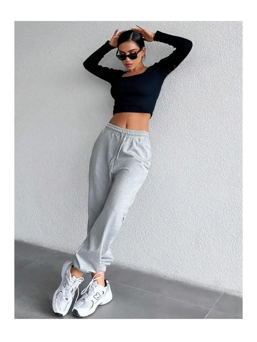 Женские широкие спортивные штаны - Серая модель с самозаворачивающимся низом SPR24EA89 | Комфортно и стильно