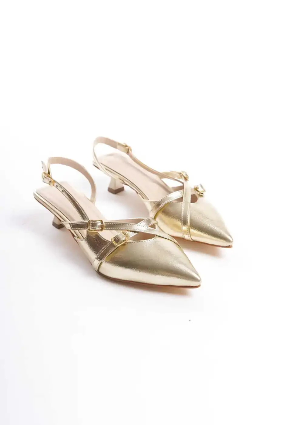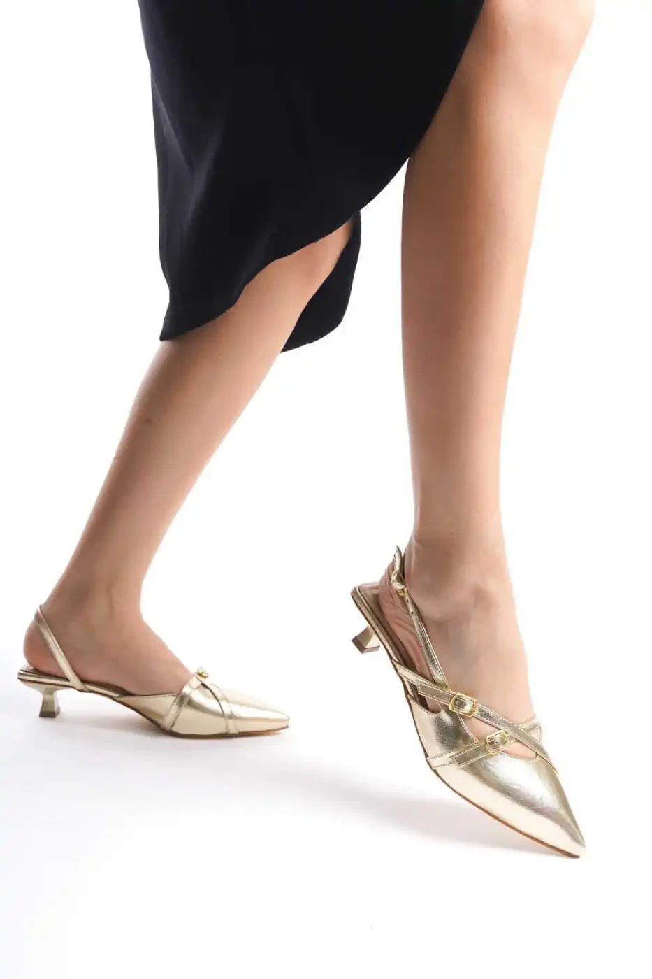 Идеальный выбор для элегантного и стильного образа, эти золотые женские туфли на каблуке должны быть в гардеробе каждой женщины. С высотой каблука 3 см туфли обеспечивают комфортную и стильную носку, а ремешки с пряжкой придают современный и модный вид. Заостренный носок сочетается с любой одеждой, добавляя элегантности вашему стилю.