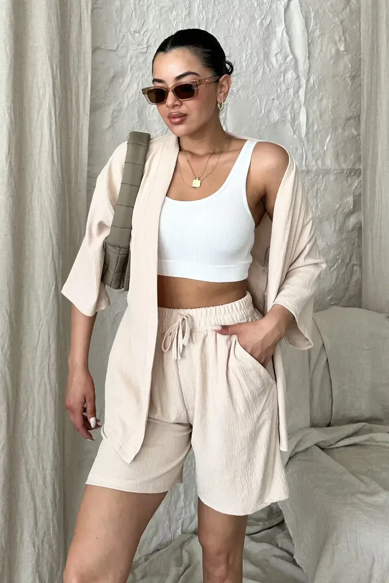 Этот женский бежевый комплект кимоно-рубашки с шортами от MODAGEN сочетает в себе элегантность и комфорт и станет незаменимым в вашем гардеробе. Этот комплект, выполненный в неподвластном времени бежевом цвете, будет сопровождать вас в повседневной жизни и позволит вам подчеркнуть свой стиль в особых случаях. Этот специальный комплект предлагается по акционной цене, выпущен в ограниченном количестве и доступен, пока есть в наличии. Цена продажи товара определяется продавцом, и если несколько продавцов предлагают товар для продажи, сортировка осуществляется с учетом таких факторов, как цена, рейтинг продавца, статус доставки, акции, бесплатная доставка и быстрая доставка. Вы можете заказать не более 5 единиц этого уникального комплекта. Trendyol оставляет за собой право отменить ваш заказ, если вы хотите заказать больше. Для корпоративных заказов могут быть установлены другие лимиты. Если вы не удовлетворены товаром, вы можете воспользоваться возможностью бесплатного возврата в течение 15 дней. Этот комплект, отличающийся удобным и стильным дизайном, легко сочетается с другими вещами благодаря бежевому цвету и подходит для любой обстановки. Простой узор представляет собой простоту и вневременность, а силуэт оверсайз поможет вам создать современный и удобный стиль. Этот дизайн, не ограничивающий вашу свободу движений, обеспечивает долговечность и качество благодаря тканой ткани. Этот комплект, обещающий длительный комфорт, является идеальным выбором для всех благодаря своему дизайну, который нравится всем возрастным группам. Этот комплект, состоящий из верха кимоно и шорт, является прекрасной возможностью создать практичный и стильный верх и низ. Этот комплект, который дополнит вашу элегантность как в повседневной деятельности, так и на особых мероприятиях, предлагает вам уникальный опыт, сочетая в себе благородство бежевого цвета и комфорт современного дизайна. Не упустите этот комплект, который обещает стать самой любимой вещью в вашем гардеробе!