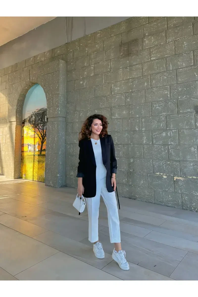 Женский блейзер с поясом - это особенная вещь, которая привлекает внимание своим современным и элегантным дизайном и позволяет вам выразить свой стиль в любой обстановке. Благодаря высококачественной ткани он обеспечивает комфорт в течение всего дня, а деталь с поясом подчеркивает ваш женственный силуэт. Этот блейзер подходит для широкого спектра случаев, от деловых встреч до особых мероприятий. Вы можете дополнить свой элегантный образ классическим сочетанием или создать другой образ с более спортивным стилем. Пояс позволяет по-разному завязывать блейзер, создавая разные образы. Например, можно завязать его потуже, чтобы создать более подтянутый образ, или оставить его свободным, чтобы создать более непринужденный и небрежный стиль. Черный цвет блейзера легко сочетается с любой одеждой, давая вам свободу комбинирования. Благодаря внутренней подкладке его удобно носить, и он не вызывает дискомфорта при контакте с кожей. Крой блейзера идеально облегает ваше тело от плеч до подола и придает вам уверенности в себе. Вы можете сочетать его с рубашкой и юбкой-карандаш для создания профессионального образа в офисе или дополнить его элегантным платьем для ужина. Вы также можете выразить свой стиль, надев его с джинсами и базовой футболкой, когда встречаетесь с друзьями в выходные дни. Этот блейзер - один из самых универсальных предметов в вашем гардеробе. Это идеальный выбор для женщин, которые ищут одновременно стильный и удобный вариант. Деталь с поясом придает современный вид классическим блейзерам, а черный цвет - вневременную элегантность. Этот блейзер - не просто предмет одежды, это еще и выражение стиля. Он будет сопровождать вас во всех случаях, когда вы хотите чувствовать себя особенной и красивой, дополнять ваш стиль и повышать вашу уверенность в себе. С женским блейзером с поясом вы всегда будете выглядеть стильно и эффектно.