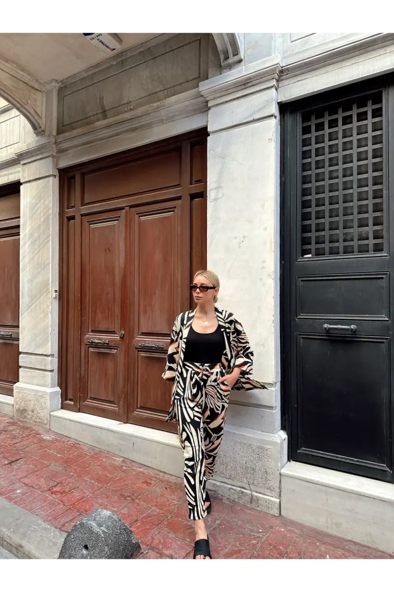 Женский костюм с брюками, свободного кроя, с принтом кимоно, верх и низ, сочетает в себе элегантность и комфорт, и станет незаменимой частью вашего повседневного гардероба. Этот специальный дизайн предлагается с гарантией AFROWEAR и идеально подходит для динамичного образа жизни современной женщины. Благодаря удобному крою, вы будете выглядеть стильно, не ограничивая свободу движений в течение дня. Вы всегда будете чувствовать себя комфортно и стильно, отдыхая дома, встречаясь с друзьями или совершая легкую вечернюю прогулку. Черно-белый принт изделия придает ему как классический, так и современный вид, а его легкость в сочетании позволяет создавать различные стили. Круглый вырез горловины и стандартный дизайн рукавов придают комплекту современный вид, а эластичная талия обеспечивает комфорт в течение всего дня. Благодаря тонкому материалу вы будете чувствовать себя прохладно и комфортно, особенно в летние месяцы. Этот костюм не только стильно выглядит, но и поддерживает концепцию устойчивой моды. Как часть экологически чистой коллекции, он позволяет вам сделать экологически ответственный выбор. Смесь 80% хлопка и 20% полиэстера повышает прочность и обеспечивает воздухопроницаемость, поэтому ваша кожа будет чувствовать себя комфортно в течение всего дня. Брюки миди с зауженным кроем подчеркивают ваши женственные линии, сохраняя при этом свободу движений. Этот комплект с принтом предлагает привлекательный стиль и идеально подходит для повседневного использования. Этот набор из двух частей состоит из верха кимоно и брюк и обогащает варианты сочетаний в вашем гардеробе. Тип ткани с тканым переплетением увеличивает долговечность изделия, обеспечивая длительное использование. Женский костюм с брюками, свободного кроя, с принтом кимоно, верх и низ, — это не просто одежда, это образ жизни. Он будет сопровождать вас в каждый момент, как своим комфортом, так и элегантностью, и сделает вас оригинальным и стильным в любой обстановке. Добавив этот костюм в свой гардероб, побалуйте себя и насладитесь душевным спокойствием, сделав экологически ответственный выбор. Этот специальный дизайн, предлагаемый с качеством AFROWEAR, станет самым приятным способом отразить свой стиль.
