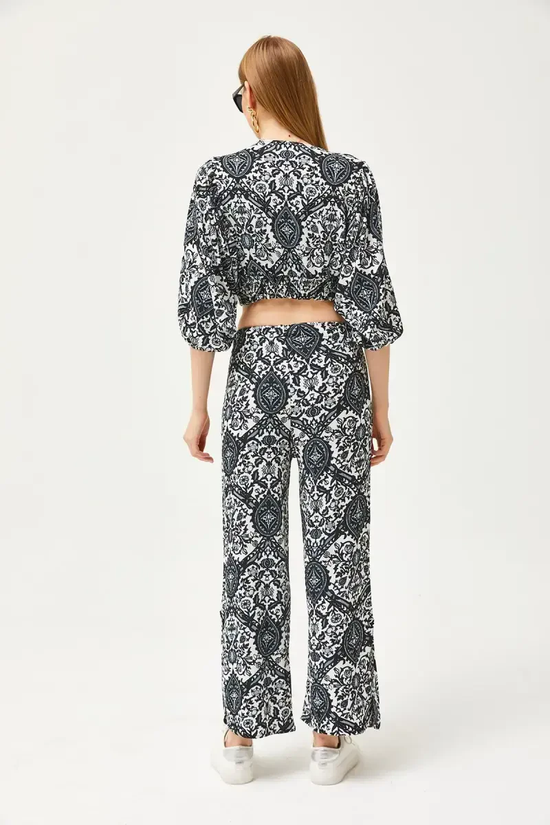 Подчеркните свой стиль с помощью женского черного костюма с принтом TKM-19000265, сочетающего в себе элегантность и комфорт. Этот эксклюзивный костюм сочетает в себе современные узоры и благородство черного цвета, что позволяет вам привлекать внимание в любой обстановке. Этот костюм, который вы можете с легкостью выбрать как для повседневного использования, так и для особых случаев, станет одной из незаменимых вещей в вашем гардеробе.**Описание товара**Женский черный костюм с принтом TKM-19000265 - это специальный дизайн, отражающий стильный и удобный подход к одежде современной женщины. Этот костюм позволяет вам подчеркнуть свою элегантность как в повседневной жизни, так и в особые моменты. Непреходящая элегантность черного цвета в сочетании с современными узорами на костюме создает привлекательный и неповторимый образ. Высококачественная ткань обеспечивает комфорт в течение всего дня, а элегантный крой изящно подчеркивает ваши формы. Этот костюм, который вы можете носить как отдельно, так и в сочетании с другими вещами, станет одним из ваших самых любимых предметов гардероба. Верхняя часть костюма выделяется современным узором и удобным кроем. Длинные рукава согревают вас в прохладную погоду, а стильные детали дополняют ваш образ. Нижняя часть, с другой стороны, имеет высокую посадку и широкие штанины, что обеспечивает как удобство, так и модный вид. Эластичная деталь на талии повышает ваш комфорт в течение всего дня и обеспечивает идеальную посадку по фигуре. Этот костюм не только выглядит стильно, но и предлагает практичное использование. Его легко надевать и снимать, что экономит ваше время в напряженные дни. Благодаря качеству ткани он долговечен и не изнашивается легко. Кроме того, его можно легко сочетать с различными аксессуарами и обувью, что позволяет каждый раз создавать новый образ. Женский черный костюм с принтом TKM-19000265 - идеальный выбор для женщин, которые ищут элегантность и комфорт в одном. Собираетесь ли вы на встречу с друзьями или блистаете на особом мероприятии, с этим костюмом вы всегда будете выглядеть эффектно. Вы обязательно должны попробовать этот костюм, чтобы почувствовать себя особенной и отразить свой стиль. Этот костюм - не просто одежда, это образ жизни. Выберите женский черный костюм с принтом TKM-19000265, чтобы чувствовать себя хорошо и повысить свою уверенность в себе, и создайте неповторимый образ.**Характеристики продукта*** Черный цвет* Современный дизайн с принтом* Удобный крой* Высококачественная ткань* Верхняя часть с длинными рукавами* Нижняя часть с высокой талией и широкими штанинами* Эластичная деталь на талии* Легко надевать и снимать* Подходит для различных комбинаций* Подходит для повседневного использования и особых случаев**Дополнительная информация**Рекомендуется стирать изделие в соответствии с инструкциями по стирке, указанными на этикетке, чтобы обеспечить его долговечность. На модели размер S. Состав изделия: [Пожалуйста, добавьте состав изделия здесь, например, 95% полиэстер, 5% эластан]. Цвет изделия может незначительно отличаться из-за различий в освещении на съемках.