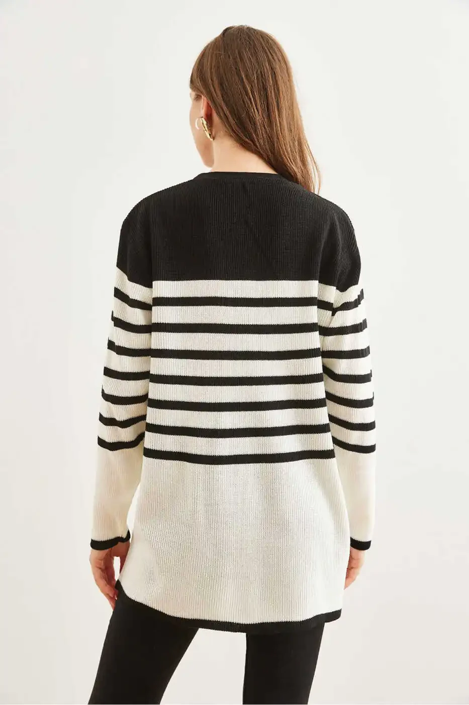 Женский черный полосатый кардиган, трикотаж с металлическими пуговицами, Olalook, черный трикотаж, полосатый трикотаж, удобный трикотаж