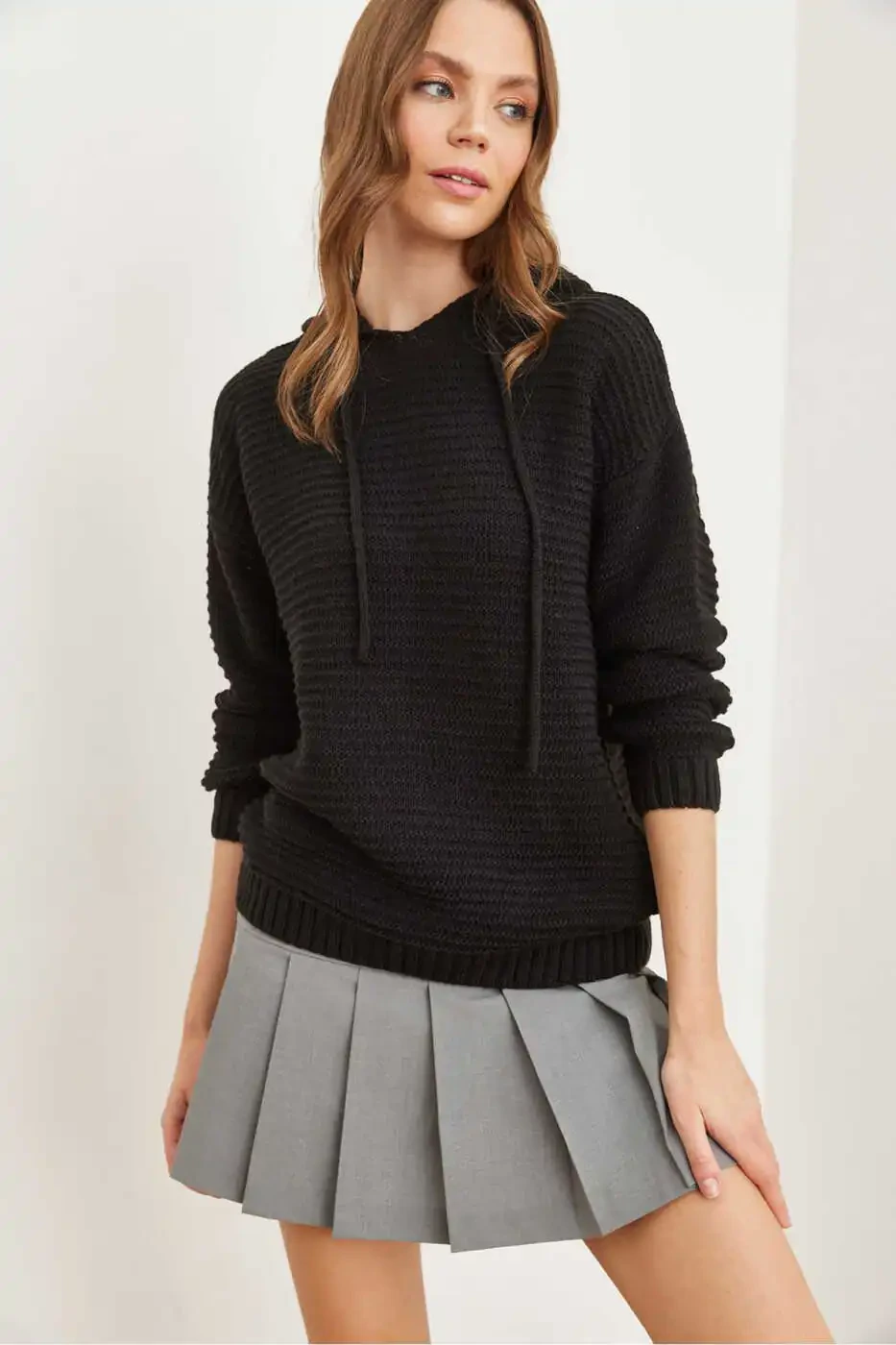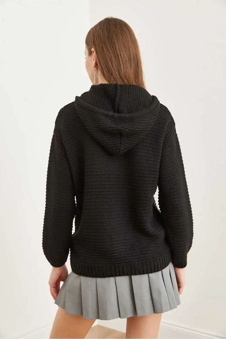 **Женский черный вязаный свитер с капюшоном HRK-19000301****Информация о продукте:**Этот стильный и удобный женский вязаный свитер с капюшоном изготовлен из 100% акрила, что делает его невероятно мягким и эластичным. Имеет стандартный размер с длиной/обхватом груди 58/51 см.**Характеристики:*** Черный цвет* Уютный дизайн с капюшоном* Размер на модели: Стандартный* Параметры модели: Рост: 1.74, Обхват груди: 80, Обхват талии: 60, Обхват бедер: 90**Важные примечания:*** Цвета продукта могут отличаться из-за разницы в освещении при студийной съемке.* Можно заказать не более 10 штук.* Бесплатный возврат в течение 15 дней.**Информация о заказе:**Продукт будет отправлен Trendyol - Olalook. Хотя товар может продаваться несколькими продавцами, список сортируется по таким факторам, как цена, рейтинг продавца, статус доставки, акции, стоимость доставки и варианты быстрой доставки. Более 5 штук доступно для продажи по цене кампании.