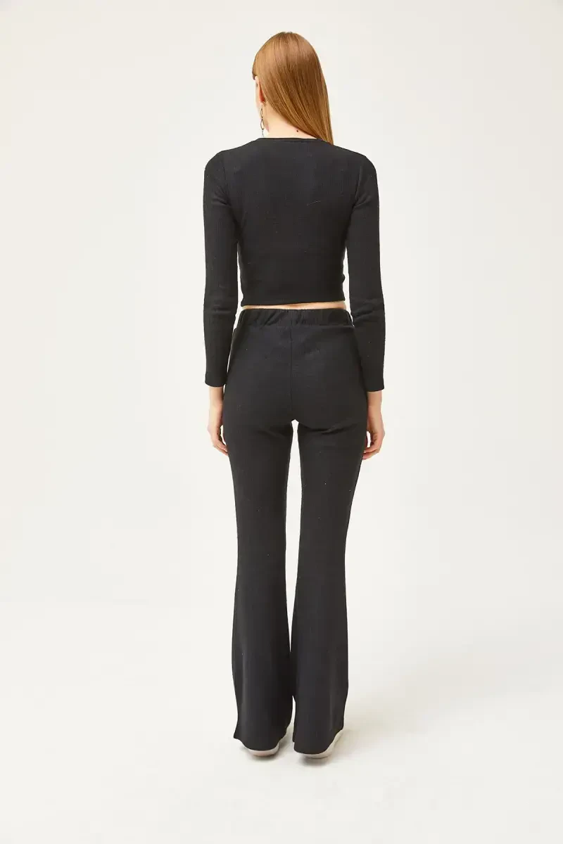 Женский черный укороченный топ, расклешенные леггинсы с начесом - идеальный комплект для женщин, которые хотят выглядеть стильно и оставаться в тепле в холодные месяцы. Этот уникальный комплект сочетает в себе современный крой укороченного топа и комфорт расклешенных леггинсов, претендуя на звание незаменимой вещи в вашем гардеробе. Благодаря начесу с внутренней стороны, он согреет вас даже в холодную погоду, позволяя вам не жертвовать своей элегантностью. Этот комплект, который вы можете легко выбрать как для повседневных занятий, так и для особых случаев, поможет вам подчеркнуть свой стиль, легко сочетаясь с различными аксессуарами. Этот комплект, отражающий благородство и элегантность черного цвета, привлекает внимание своим кроем, подходящим для любого типа фигуры. Укороченный топ, облегающий тело, создает современный вид, а расклешенные леггинсы удлиняют ноги и улучшают ваш силуэт. Мягкая текстура ткани с начесом обеспечивает комфорт в течение всего дня. Черный цвет комплекта позволяет легко сочетать его с разными цветами, позволяя вам творчески выражать свой стиль. Вы можете создать элегантный образ с туфлями на каблуках или более удобный и повседневный стиль с кроссовками. Этот стильный и удобный комплект выделяется не только своим внешним видом, но и простотой в использовании. Высококачественная ткань обеспечивает долговечность, а возможность легкой стирки и глажки делает его практичным вариантом. Он позволяет вам всегда выглядеть стильно и ухоженно, независимо от того, отдыхаете ли вы дома или выходите на улицу с друзьями. Женский черный укороченный топ, расклешенные леггинсы с начесом - идеальный выбор для женщин, которые ищут комфорт и стиль в одном лице. Этот комплект, который обязательно должен быть в вашем шкафу, является вневременной вещью, которую вы можете использовать в любое время года. В любой момент, когда вы захотите почувствовать себя особенной и красивой, вы можете выразить свой стиль, надев этот комплект.