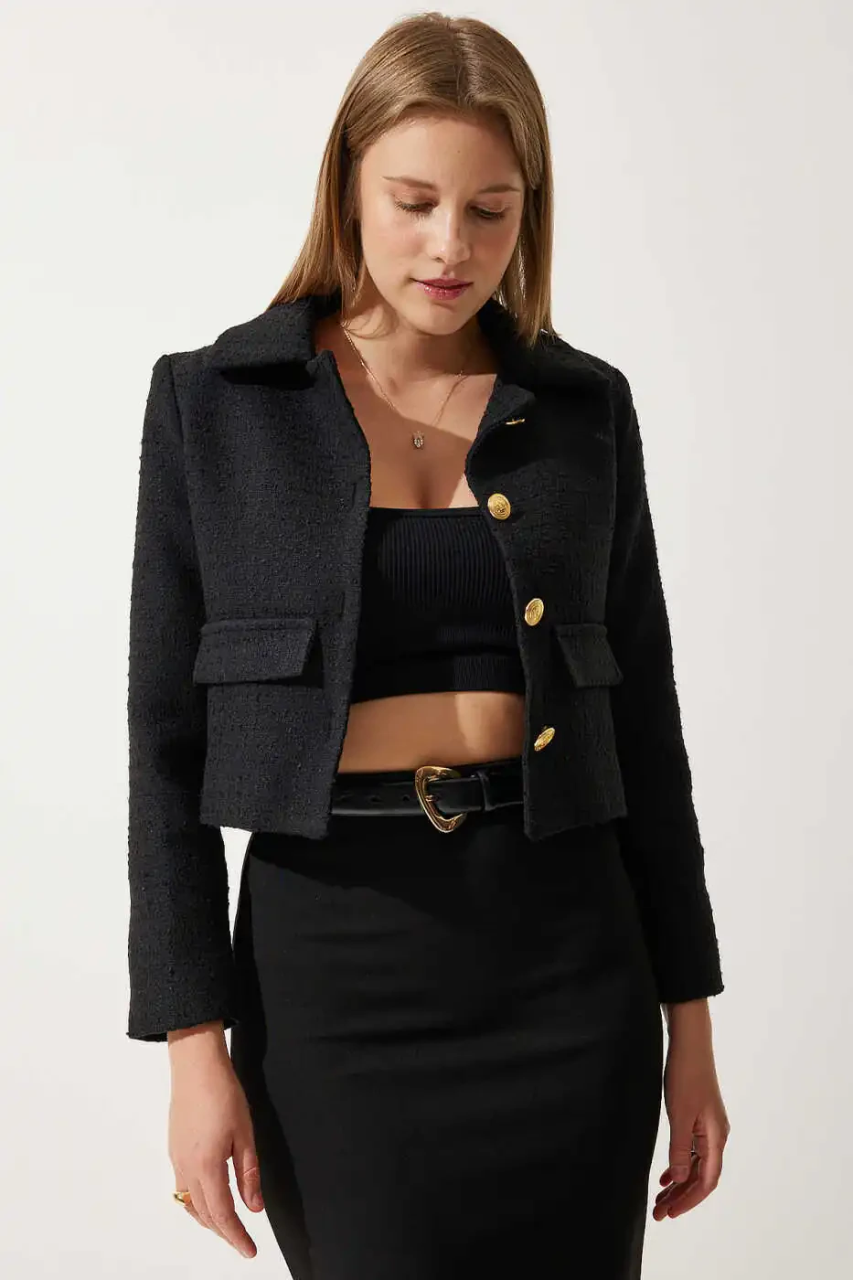 Женский черный укороченный твидовый блейзер TO00039, представляющий собой идеальное сочетание вневременной элегантности и современных линий, станет незаменимым предметом вашего гардероба. Этот пиджак, идеально подходящий для любой обстановки, имеет универсальный дизайн, который позволит вам с легкостью переходить от дневного к вечернему образу. Благодаря 100% хлопковому материалу он обеспечивает комфорт и воздухопроницаемость в течение всего дня, а твидовая текстура придает ему изысканный вид. Укороченный крой создает современный и модный силуэт, а воротник-поло — классический и вневременной шик. Ткань средней плотности делает этот пиджак идеальным выбором для межсезонья. Этот блейзер всегда обеспечит вам стильный и элегантный вид, независимо от того, носите ли вы его в повседневных образах или на особых мероприятиях. Благодаря однотонному и лаконичному дизайну этот пиджак легко сочетается с любой одеждой и станет одним из основных предметов вашей базовой коллекции. Застежка на пуговицах обеспечивает практичность, а подкладка — дополнительный комфорт. Легко чистится в соответствии с инструкцией по стирке Type 2 и надолго сохраняет свой первозданный вид. Этот блейзер — идеальный выбор для современных женщин, которые ценят и элегантность, и комфорт. Вы можете создать повседневный шикарный образ с джинсами и футболкой или блистать на особых мероприятиях с элегантным платьем. Благодаря своей универсальности и вневременному дизайну он на долгие годы займет свое место в вашем гардеробе.