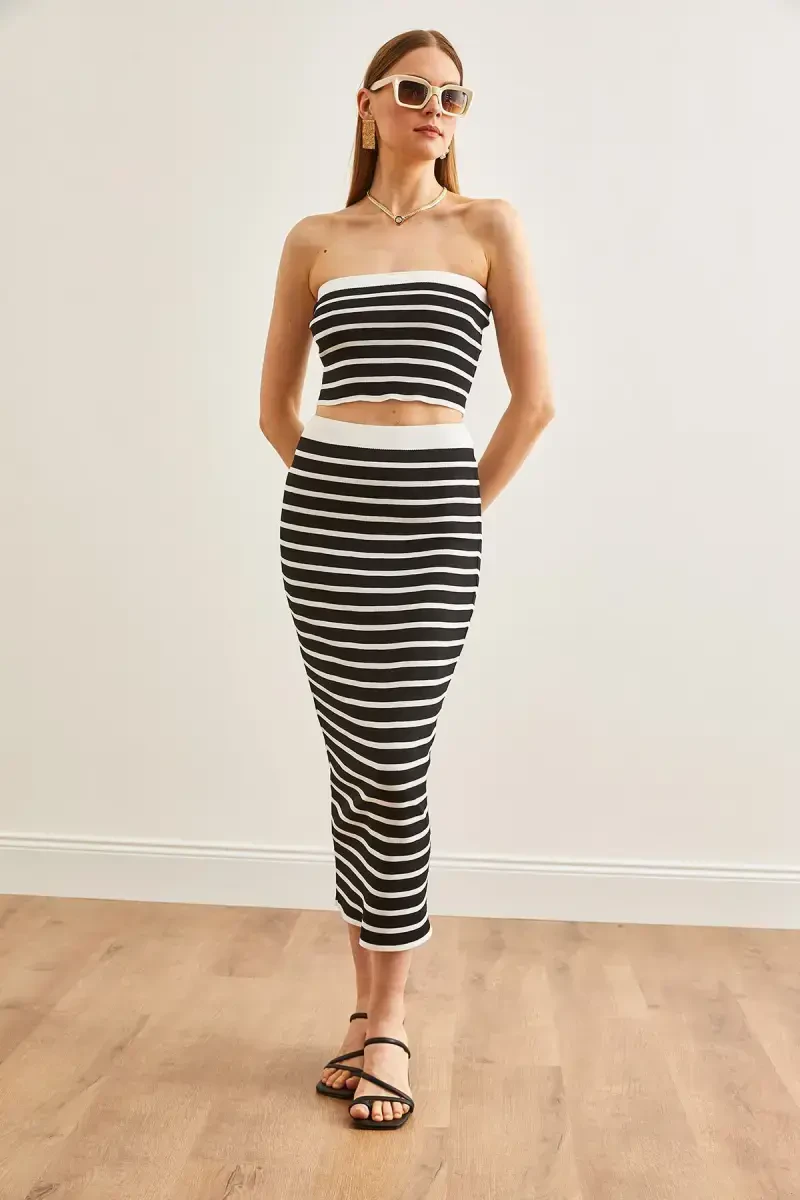 Женский черный комплект: топ-бра, блузка без бретелек и юбка-трикотаж, предназначенный для повседневного ношения, сочетает в себе комфорт и стиль, и станет незаменимой частью вашего гардероба. Этот эксклюзивный дизайн от Olalook official привлекает внимание своей акционной ценой и предлагается в ограниченном количестве. На платформе, где присутствует несколько продавцов, вы можете оценить варианты этого продукта, предлагаемые разными продавцами, принимая во внимание такие факторы, как цена, рейтинг продавца, скорость доставки, акции и преимущества доставки. Вы можете заказать не более 10 единиц товара, заказы, превышающие этот лимит, могут быть отменены Trendyol. Для корпоративных заказов могут быть установлены другие лимиты. Если вам не понравится товар, вы можете воспользоваться бесплатным возвратом в течение 15 дней. Тканая структура ткани обеспечивает долговечность и длительный срок службы изделия, а также обеспечивает комфортное ношение в течение всего дня. Благодаря простоте ухода, вы можете легко очистить его, соблюдая инструкции по стирке. Обычный крой обеспечивает удобную посадку для любого типа фигуры, а стандартный рукав и дизайн брюк-труб создают классический и неподвластный времени образ. Однотонный тип продукта идеально подходит для простых и стильных комбинаций и может быть легко персонализирован с помощью различных аксессуаров. Нормальная высота талии и детали велосипедного воротника создают современный силуэт и обеспечивают удобное ношение. Короткая длина рукава идеально подходит для переходных периодов и обеспечивает свободу движений. Благодаря простому рисунку его можно легко сочетать с любыми нижними предметами одежды и создавать вневременной стиль. Этот комплект — стильный и удобный вариант, который будет сопровождать вас как в повседневной деятельности, так и в особые моменты.