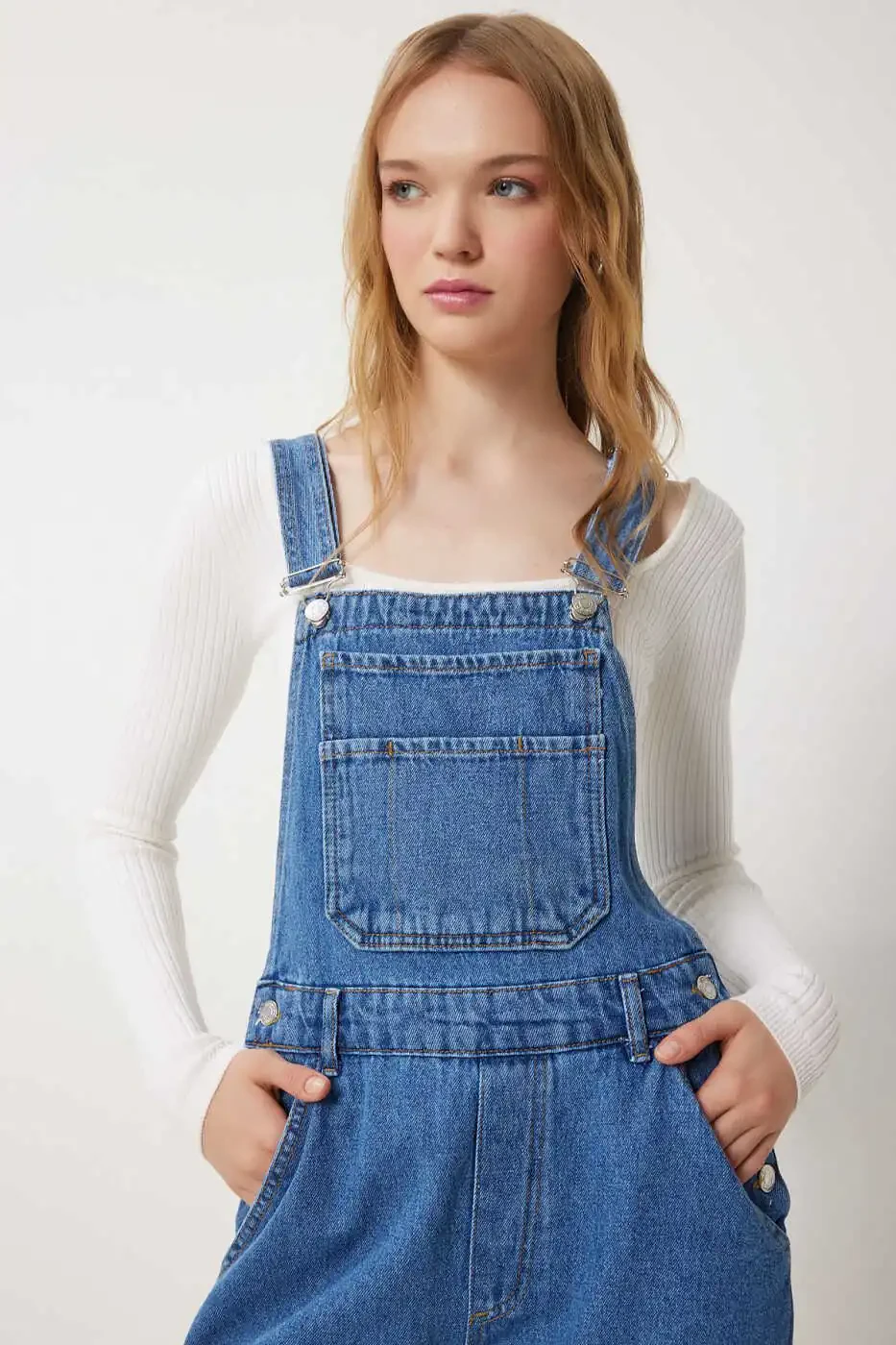Женский синий джинсовый комбинезон с большими карманами RI00002, изготовленный из джинсовой ткани, незаменимой в любое время года, создан для современных женщин, которые ищут сочетание комфорта и элегантности. Этот комбинезон с вневременным дизайном и функциональными деталями обещает стать одним из ваших любимых предметов гардероба, добавляя стиля каждому вашему моменту, от повседневной жизни до особых случаев. Благодаря большим карманам вы можете легко носить с собой такие личные вещи, как телефон и кошелек, наслаждаясь практичностью использования. Бретели на пуговицах и свободный крой обеспечивают свободу движений и комфорт в течение всего дня. Прочная джинсовая ткань обеспечивает длительный срок службы, а ее универсальность позволяет создавать различные стили. Вы можете создать повседневный шикарный образ с базовой футболкой и кроссовками или блистать на вечерних мероприятиях с элегантной блузкой и туфлями на каблуке. Этот комбинезон, подходящий для всех возрастных групп, обещает стать вневременной иконой стиля. Синий цвет легко сочетается с любыми цветами и узорами, облегчая создание комбинаций. Высококачественная джинсовая ткань сохраняет свою первоначальную форму даже при длительном использовании, не выцветает и не деформируется. Летом лямки обеспечивают прохладу и комфорт, а весной и осенью его можно легко сочетать с блузкой или свитером с длинными рукавами. Этот комбинезон — идеальный выбор для женщин, которые ищут сочетание элегантности и комфорта, предпочитая практичную и удобную одежду.