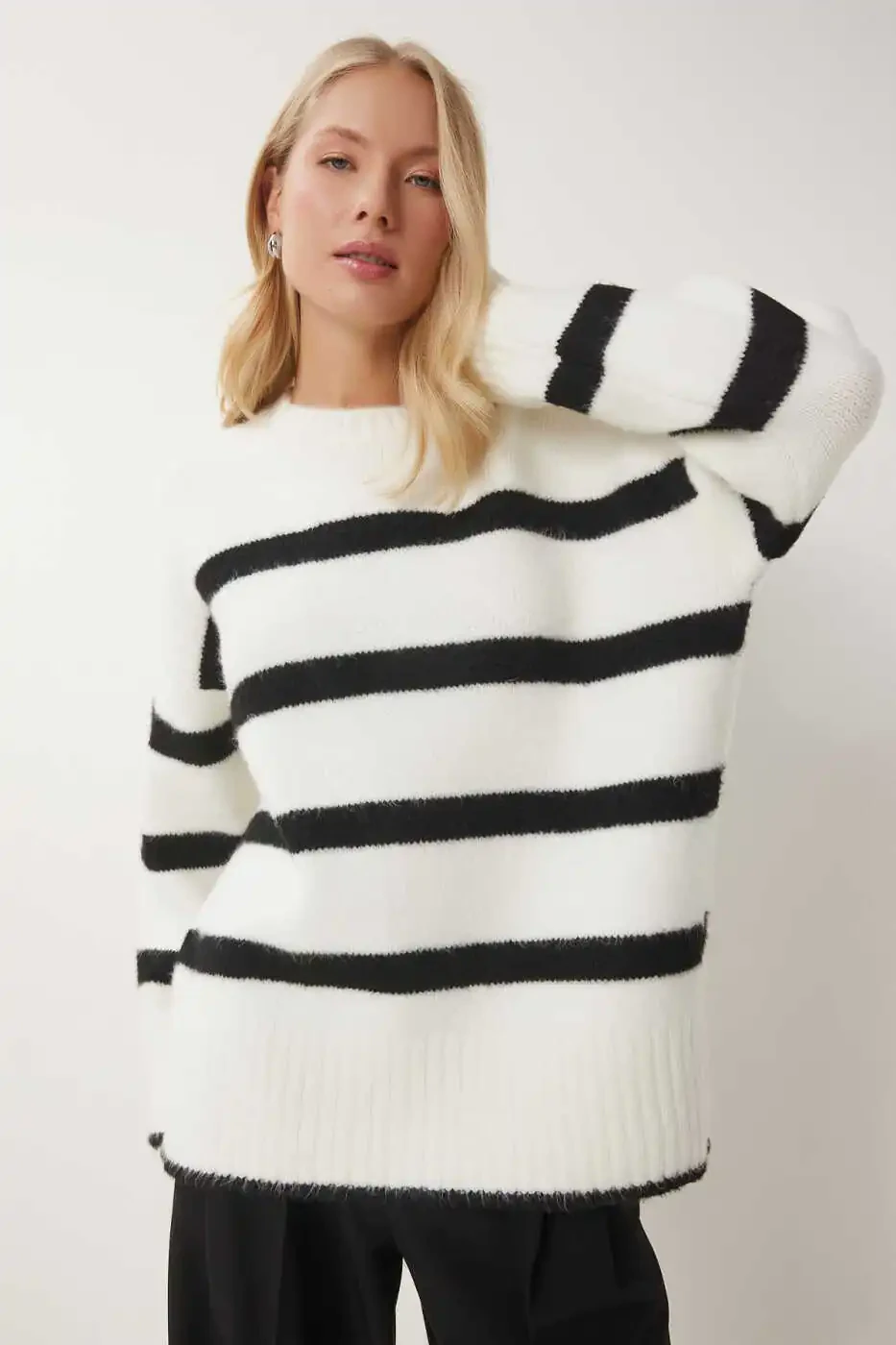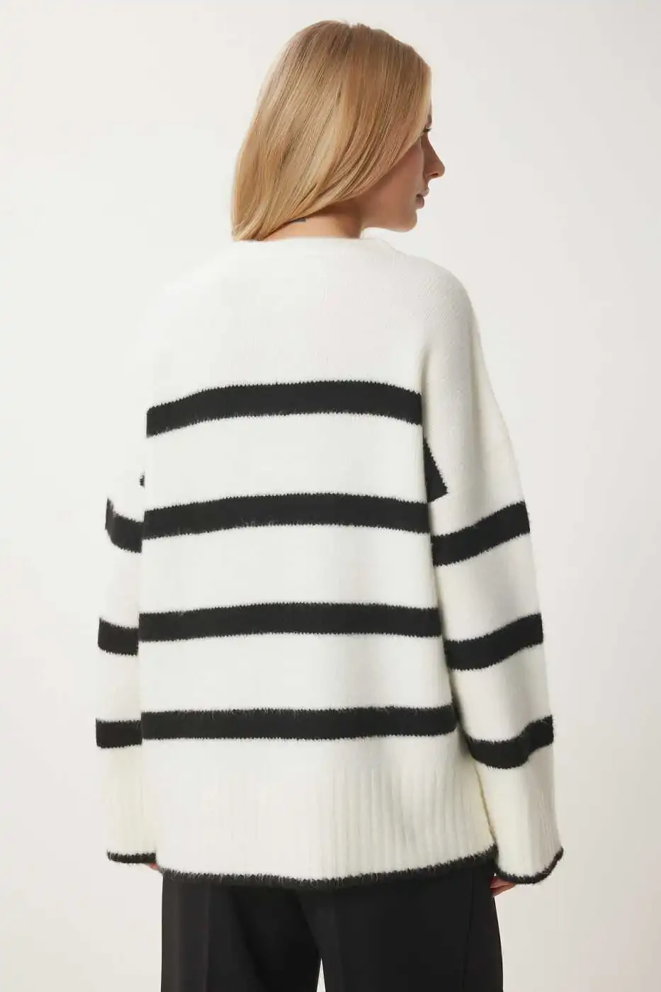 Женский трикотажный джемпер в полоску экрю и черного цвета с круглым вырезом PF00107 — это особый дизайн, сочетающий в себе элегантность и комфорт. Этот трикотажный джемпер с его современными линиями и круглым вырезом станет незаменимой вещью в вашем гардеробе. Благодаря смеси 74% акрила, 19% полиэстера и 7% эластана он сохраняет тепло и обеспечивает комфорт в течение всего дня. Заниженная линия плеч создает непринужденный силуэт, а эластичная структура не ограничивает свободу движений. Джемпер выполнен в гармоничном сочетании цветов экрю и черного, что придает ему динамичный вид и позволяет создавать различные комбинации. Этот джемпер, который можно носить как в повседневной жизни, так и на особые мероприятия, подчеркнет вашу элегантность в любой обстановке. Длина изделия 71 см и длина рукава 68 см разработаны с учетом особенностей различных типов фигуры. Вы можете выбрать свой размер, учитывая параметры модели (рост: 1,73 см, грудь: 79 см, талия: 60 см, бедра: 90 см). Этот джемпер, предлагаемый с гарантией Trendyol, обеспечивает быстрый и надежный опыт покупок. Благодаря возможности бесплатного возврата в течение 15 дней вы можете легко вернуть товар, если он вам не понравится. Этот стильный и практичный трикотажный джемпер станет одной из незаменимых вещей в вашем гардеробе. Этот джемпер, который можно с комфортом носить в любое время года благодаря его теплой структуре и современному дизайну, дополнит ваш стиль.